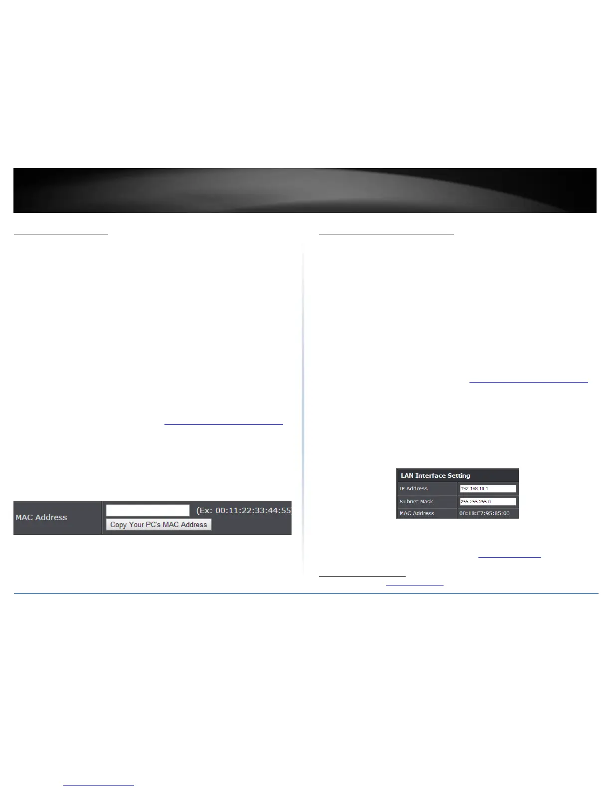 Note: You can also check the DHCP Client List for the MAC addresses of the devices on