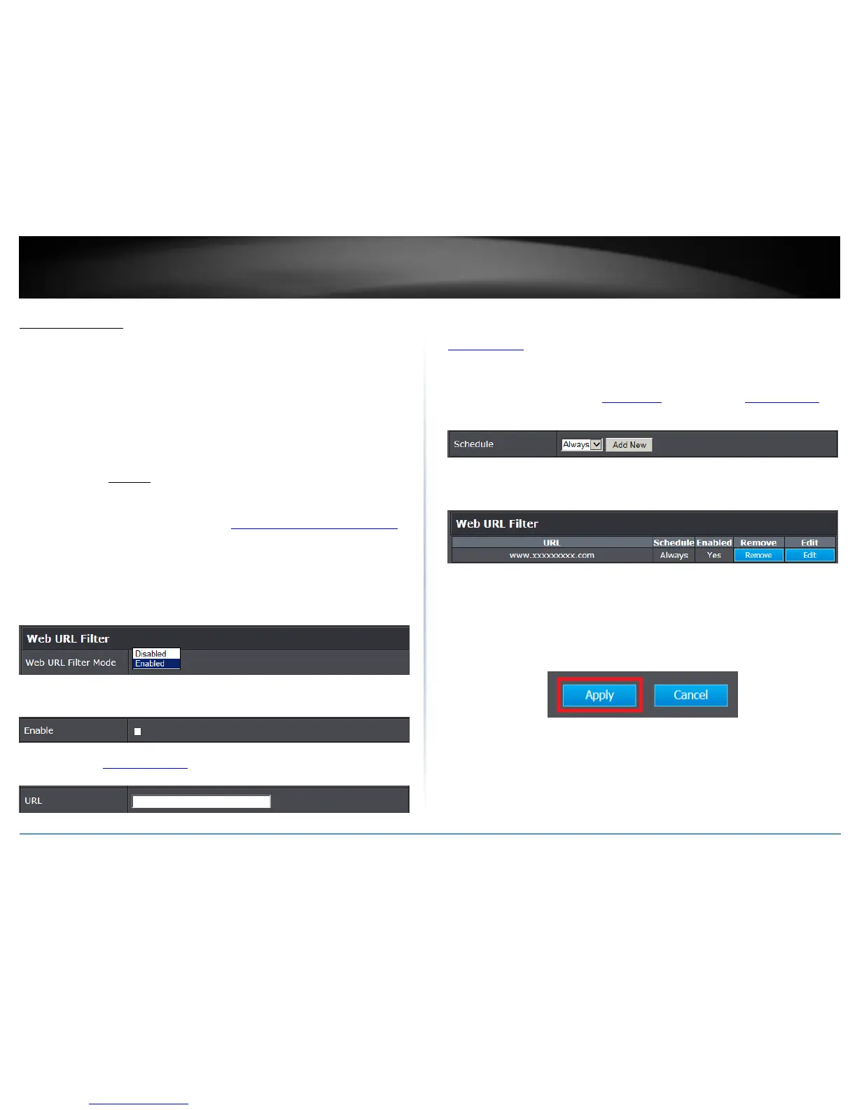 5. Enter a URL (ex. www.xxxxxxxx.com) to apply for the filter or block.