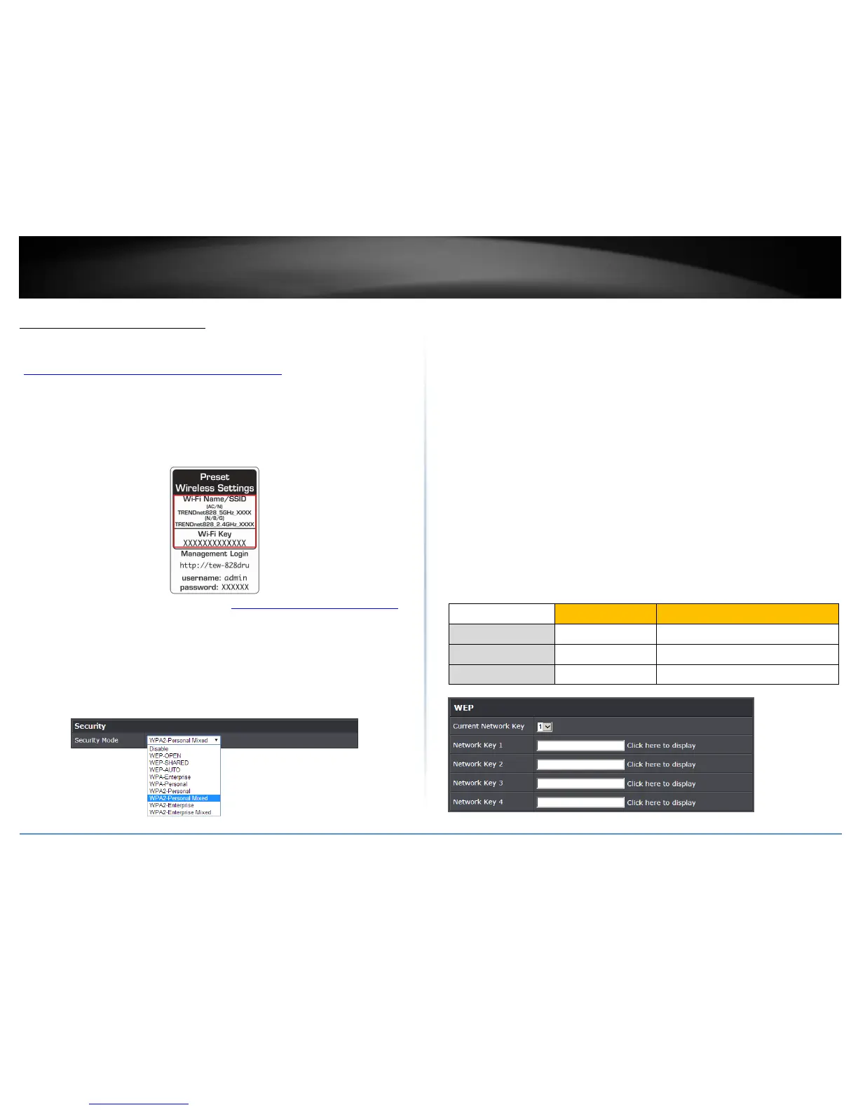 (SSID) and security key using WPA2-Personal. The predefined wireless network name and