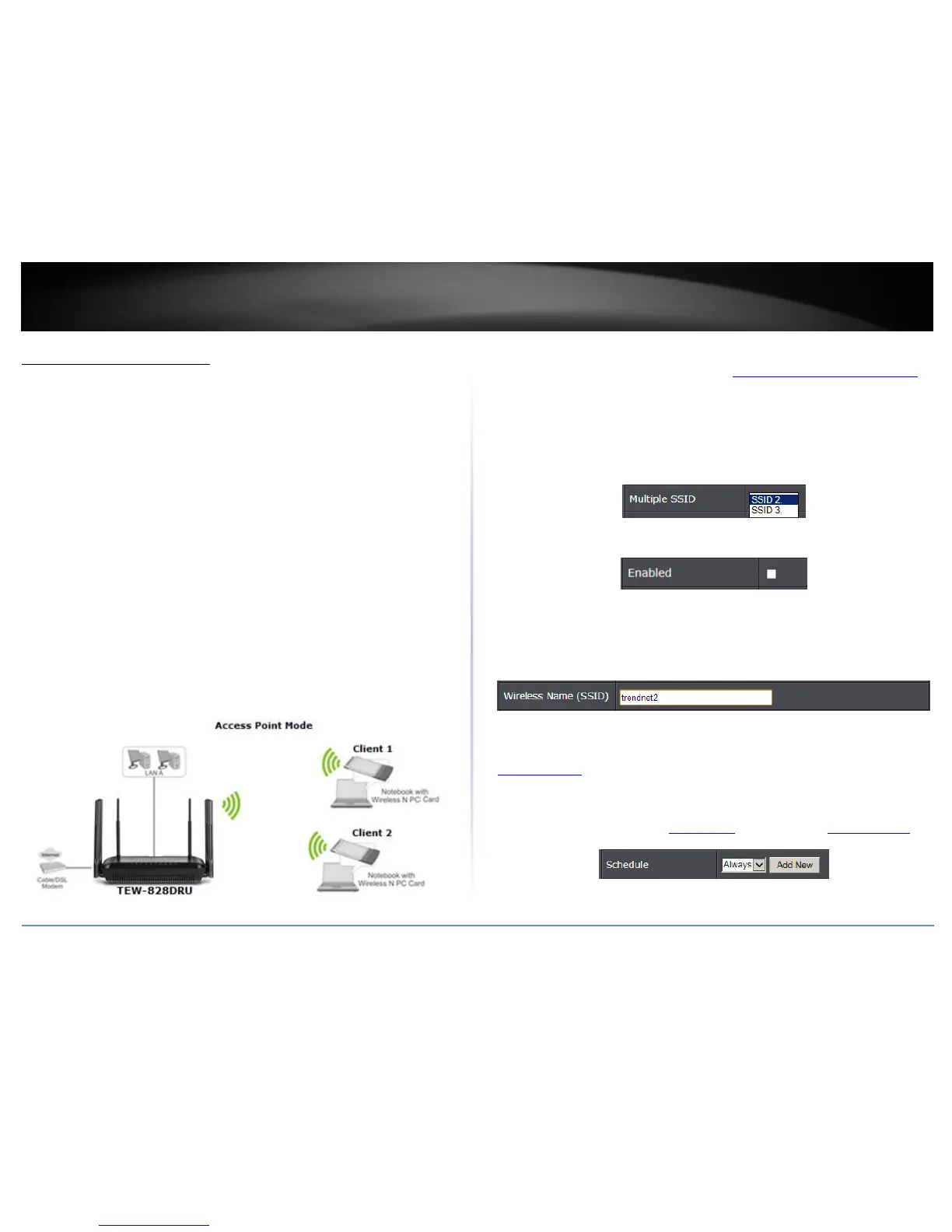 Schedule: The schedule function allows you to define a schedule when the wireless