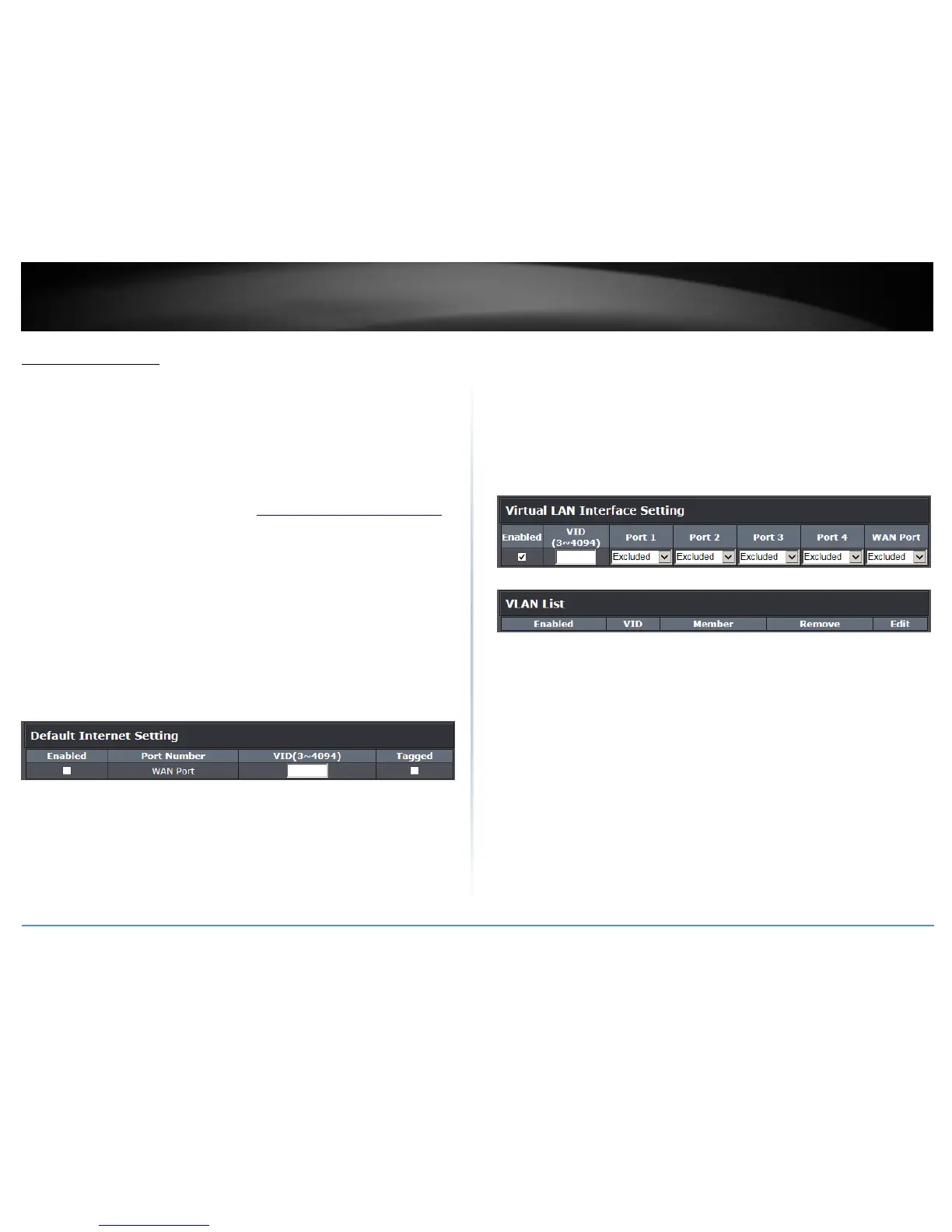 To configure VLANs under the Virtual LAN Interface Setting, check the Enabled option