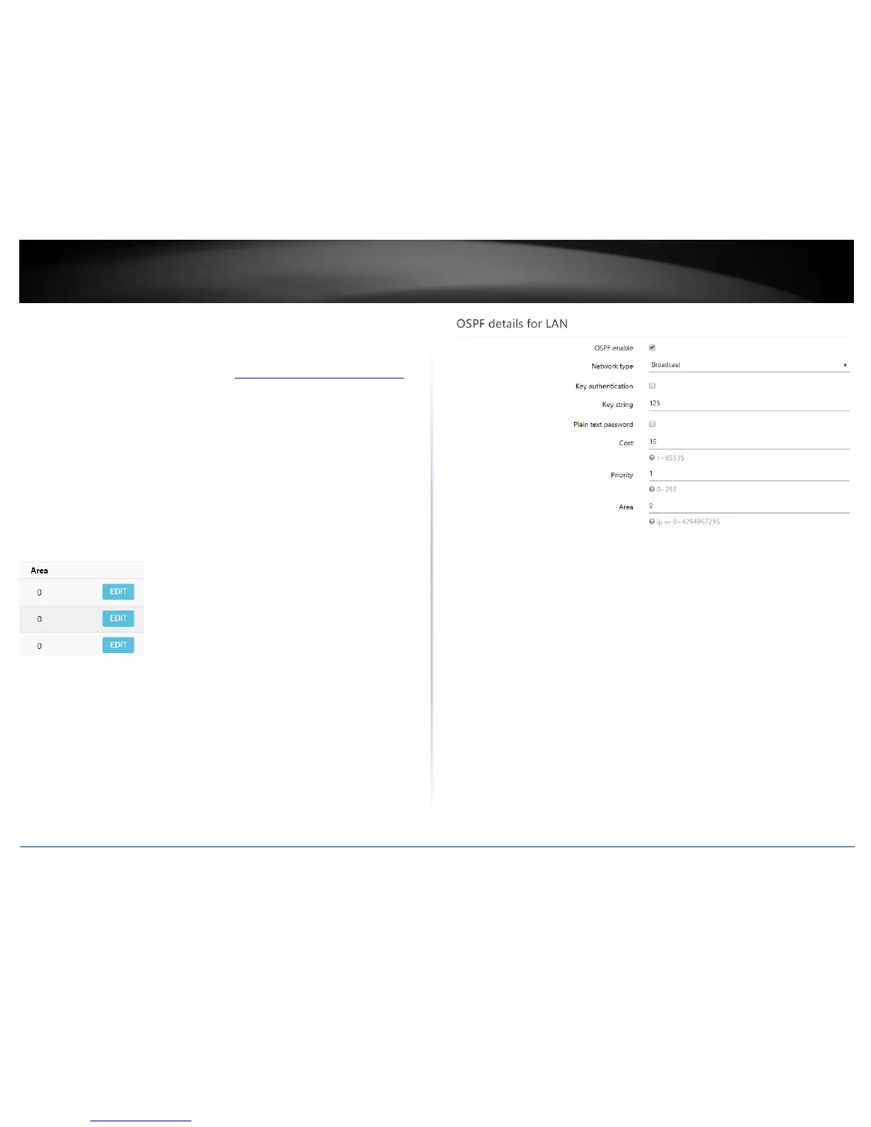 OSPF enable: Check the option to enable OSPF dynamic routing on the specified