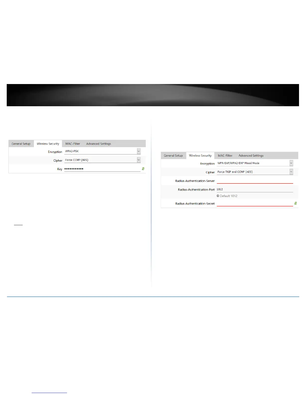 o When selecting WPA-EAP / WPA2-EAP Mixed Mode security, it is recommended