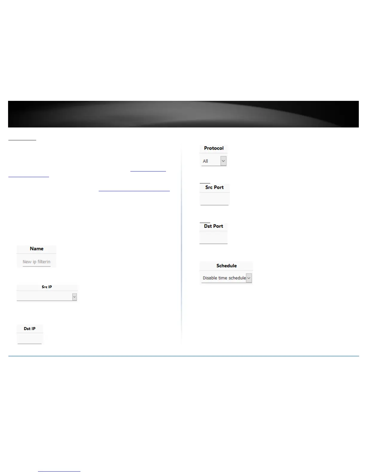 Schedule – Allows you to select a schedule when the IP filter rule should be enabled