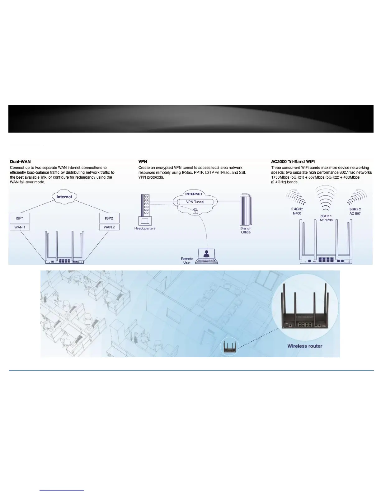 TRENDnet TEW-829DRU - Applications; Dual-WAN, VPN, and Tri-Band WiFi