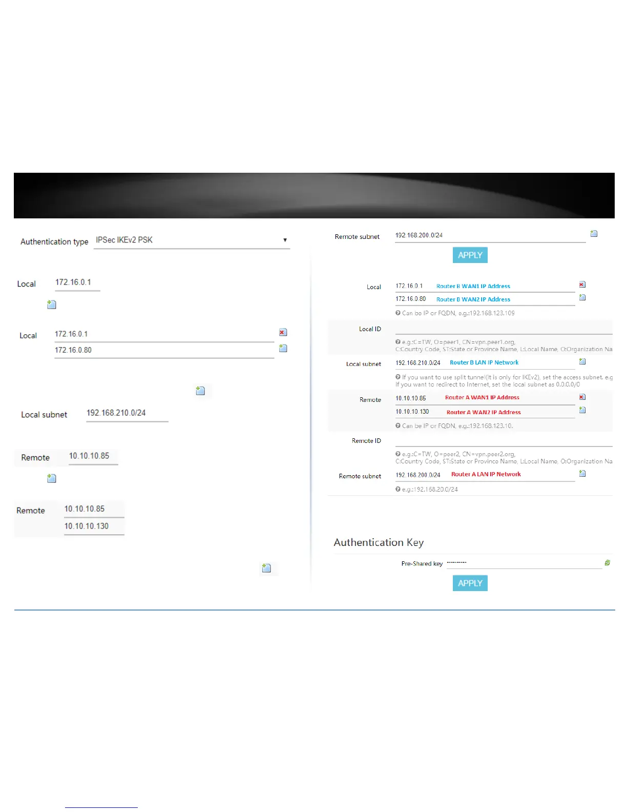 17. Under Authentication Key, enter the Pre-Shared Key (PSK) for the IPsec VPN tunnel