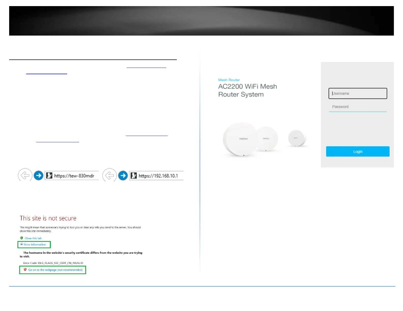 1. Open your web browser and go to URL/domain name https://tew-830mdr or default