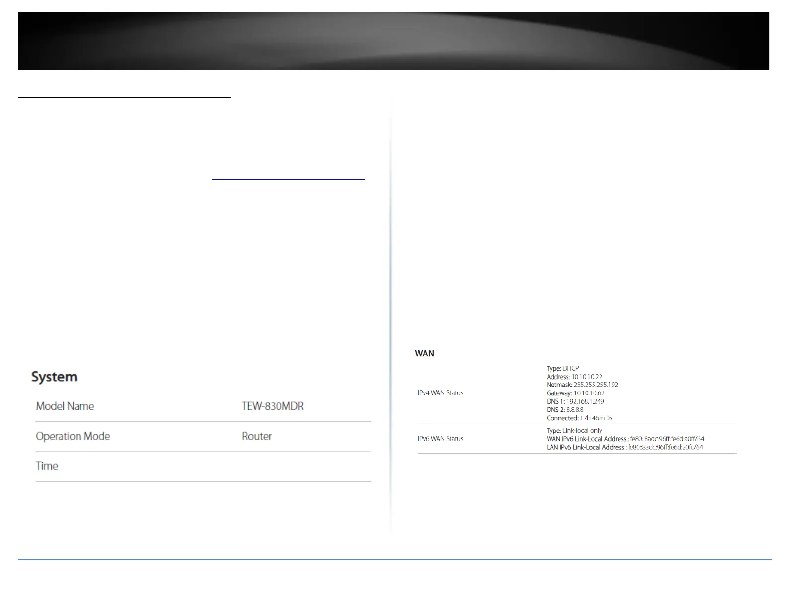 • WAN IPv6 Link-Local Address – The current Link Local IPv6 address and prefix
