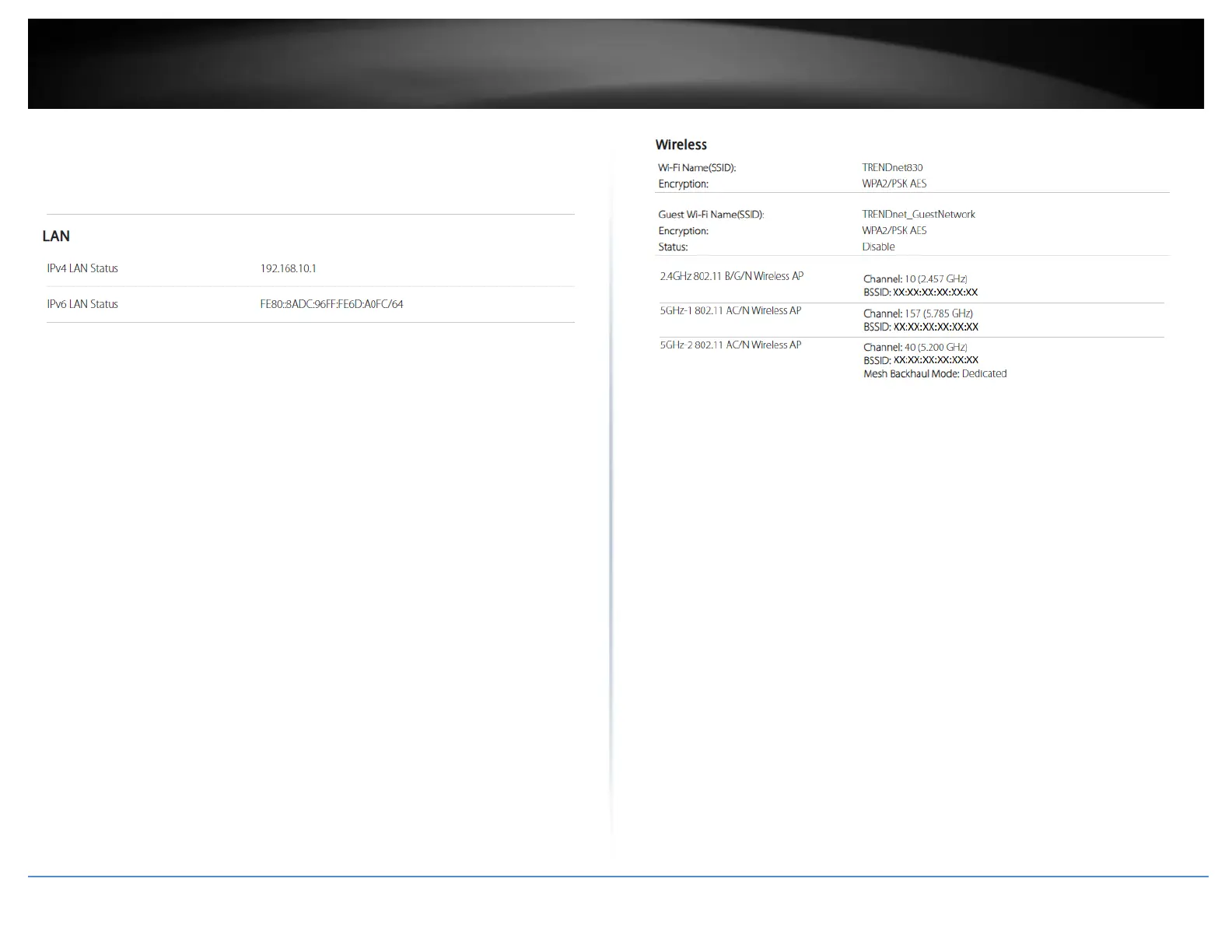 • 5GHz-2 802.11AC/N Wireless AP Mesh Backhaul Mode: Displays the current