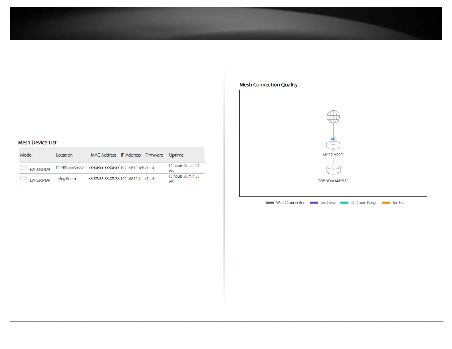 • MAC Address: Displays the MAC address of each node/mesh device.