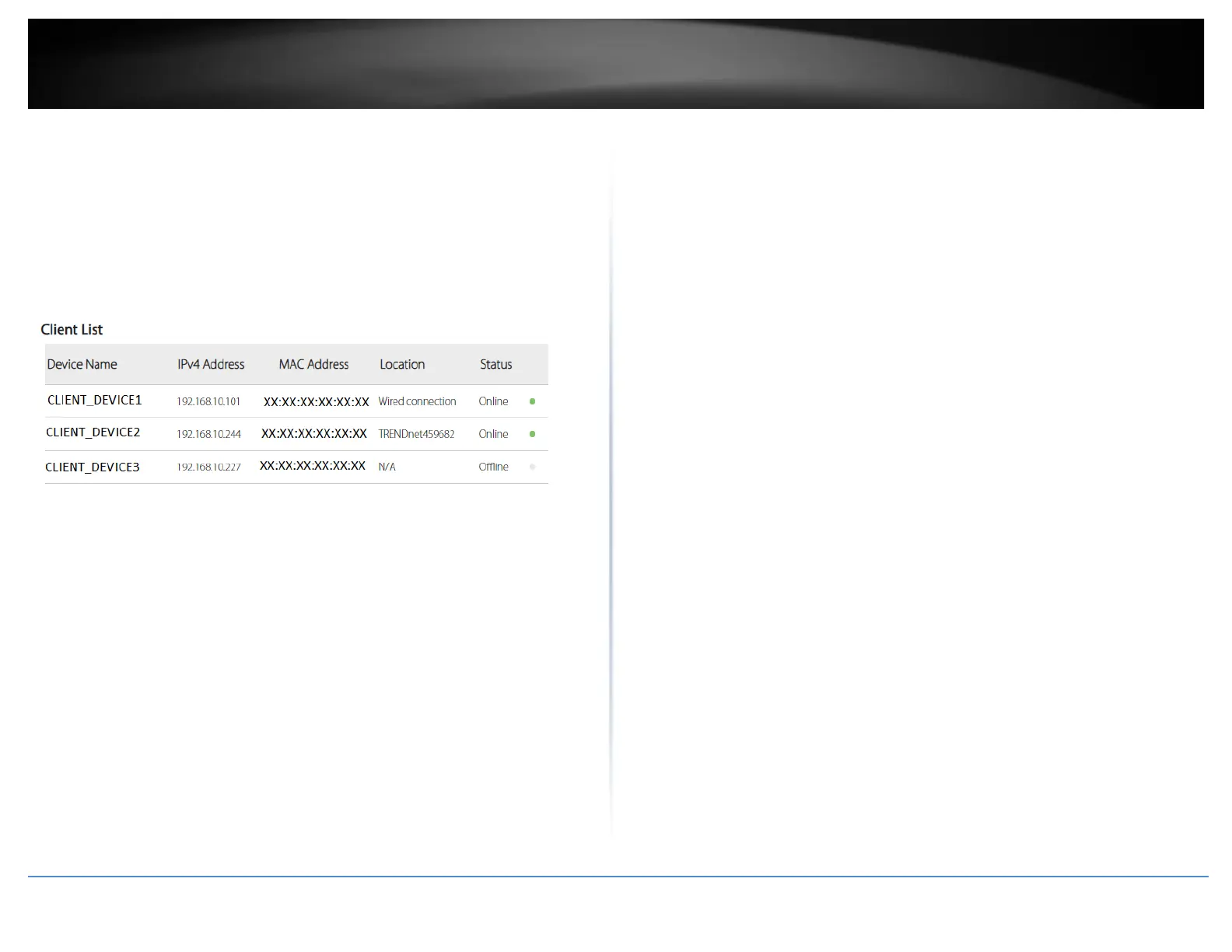 • Location: Displays if the client device is currently connected via wired Ethernet