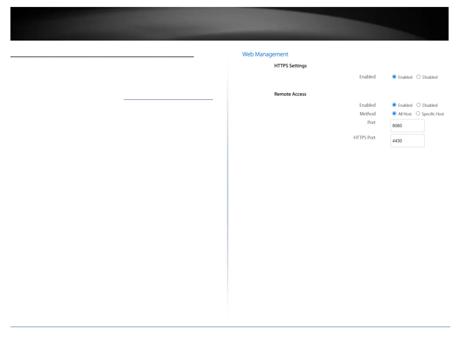 o Enabled: Selecting enabled with allow remote access to the router