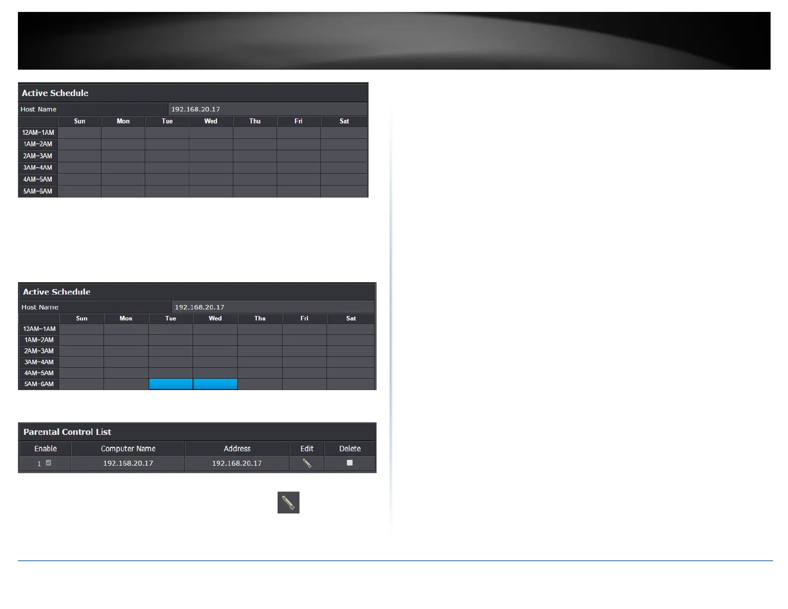 Note: In the Parental Control List, you can edit a rule by clicking under the Edit