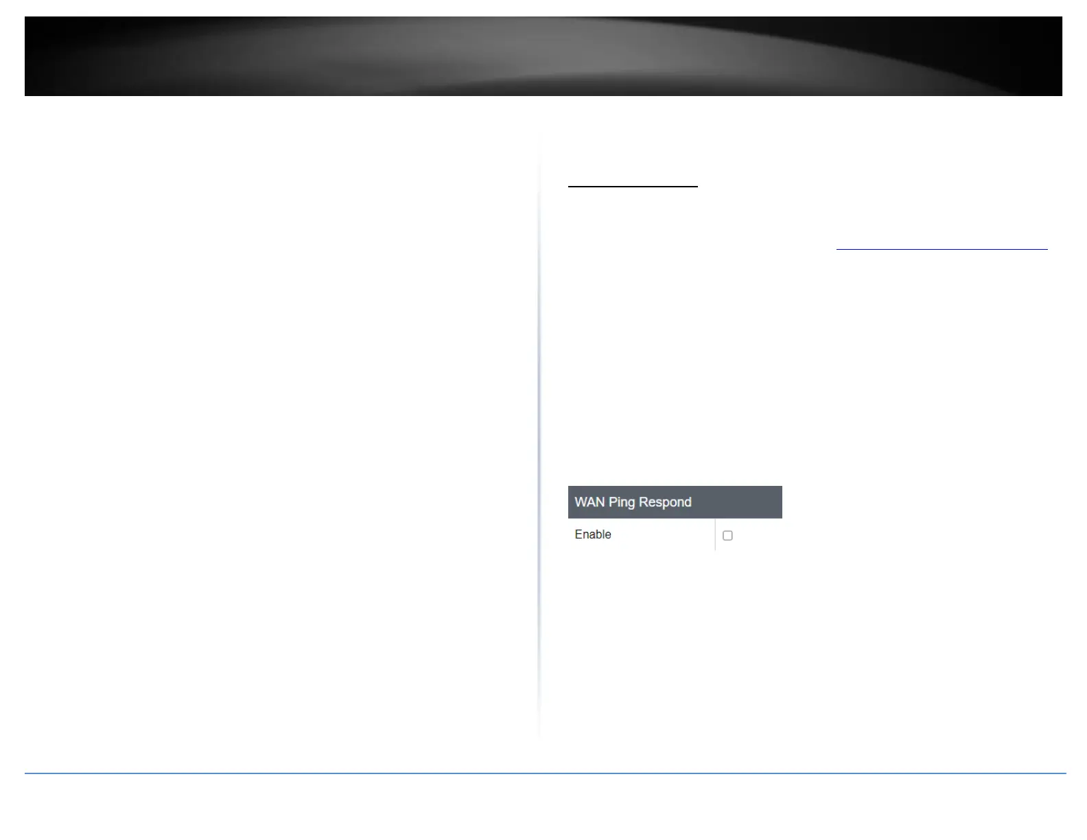 from responding to ping/ICMP requests. Enabling this option will set your WAN port