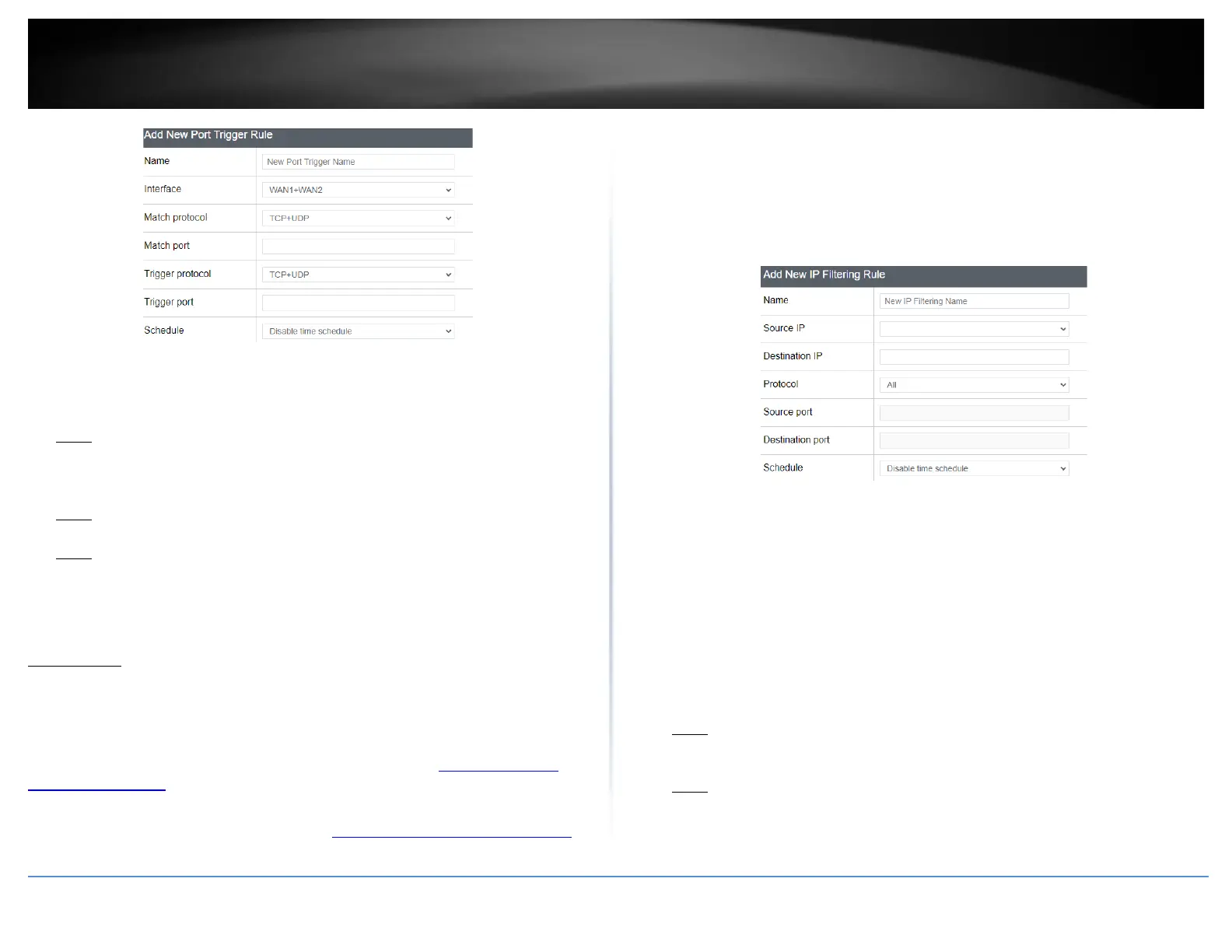 • Schedule – Allows you to select a schedule when the port trigger rule should be