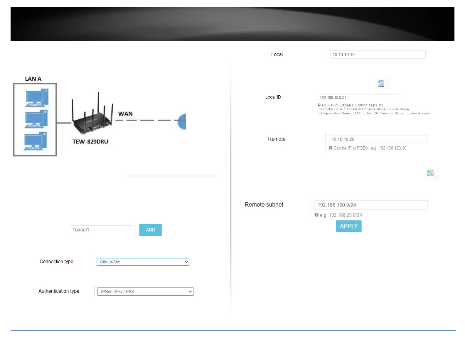 9. In the Remote subnet field, enter the remote LAN IP subnet. (e.g. 192.168.100.0/24)
