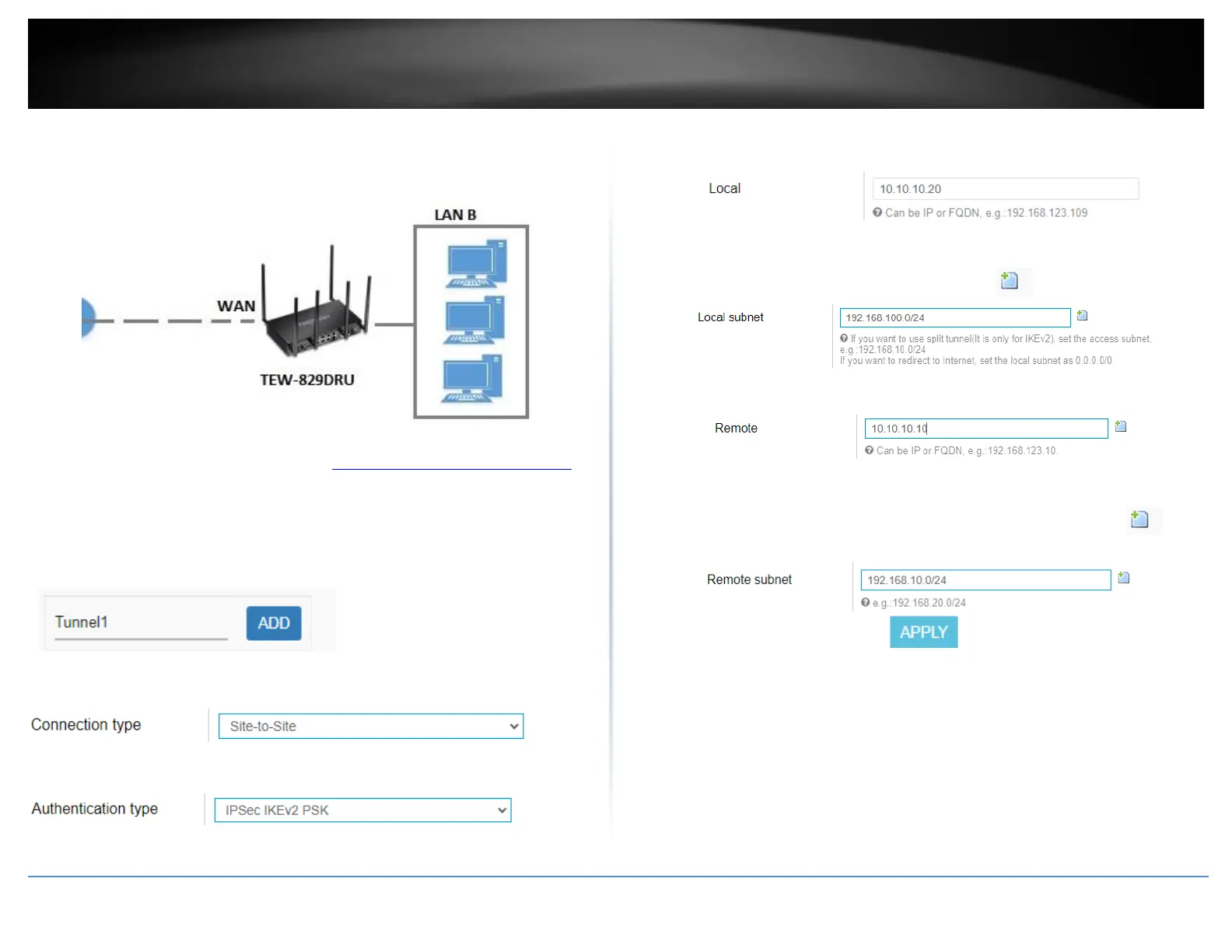 and click Apply. You can add additional local subnets by click the add icon (e.g.