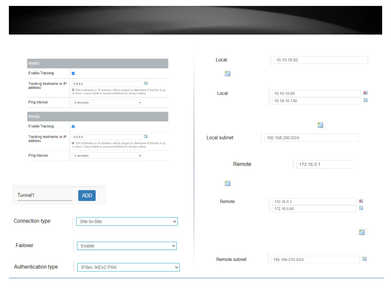 14. In the Remote field, enter the remote WAN1 IP address. (e.g. 172.16.0.1) This can
