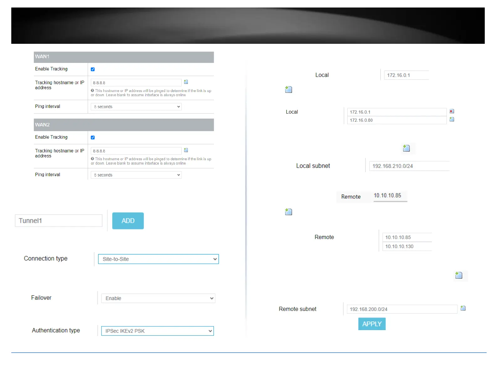 14. In the Remote field, enter the remote WAN1 IP address. (e.g. 172.16.0.1) This can