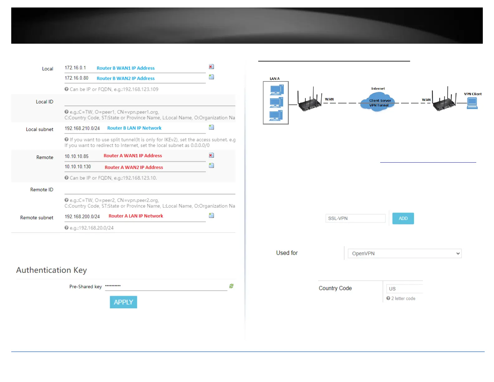 17. Under Authentication Key, enter the Pre-Shared Key (PSK) for the IPsec VPN tunnel