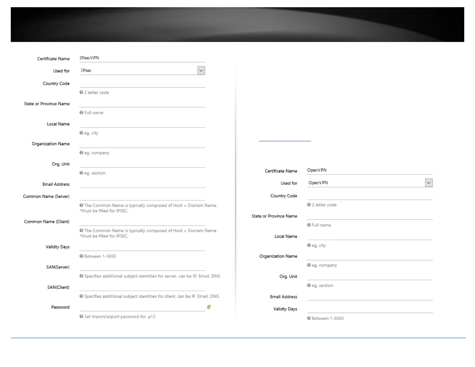 OpenVPN – Below are the parameters you can set for the certificate. All parameters are