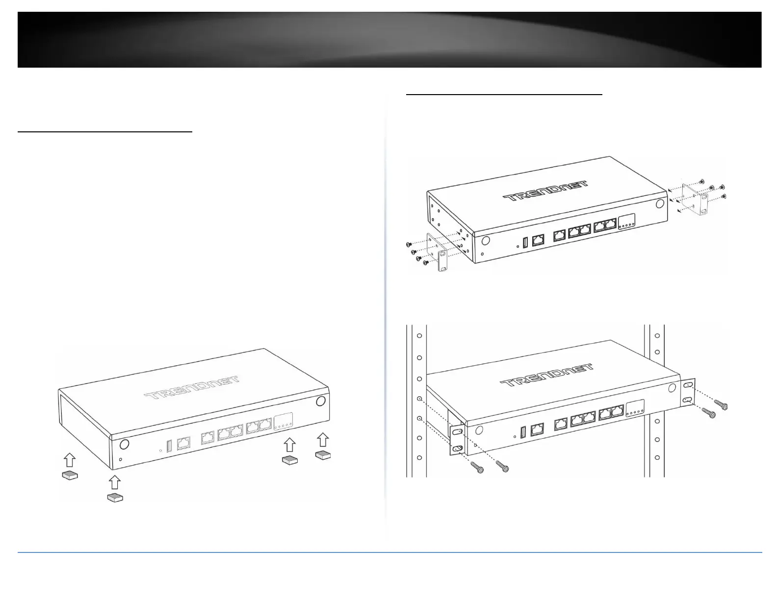 • When installing the Router on a level surface, attach the rubber feet to the