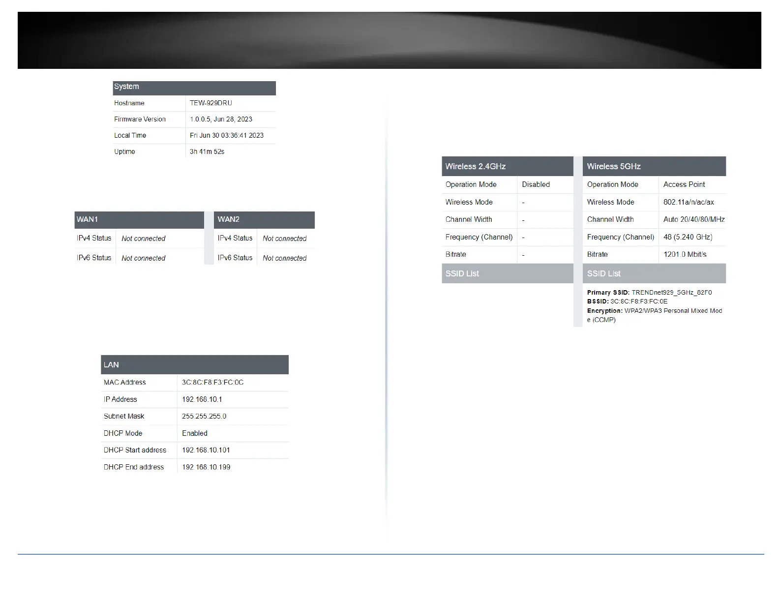 o Wireless Mode – Displays the wireless mode of the wireless band