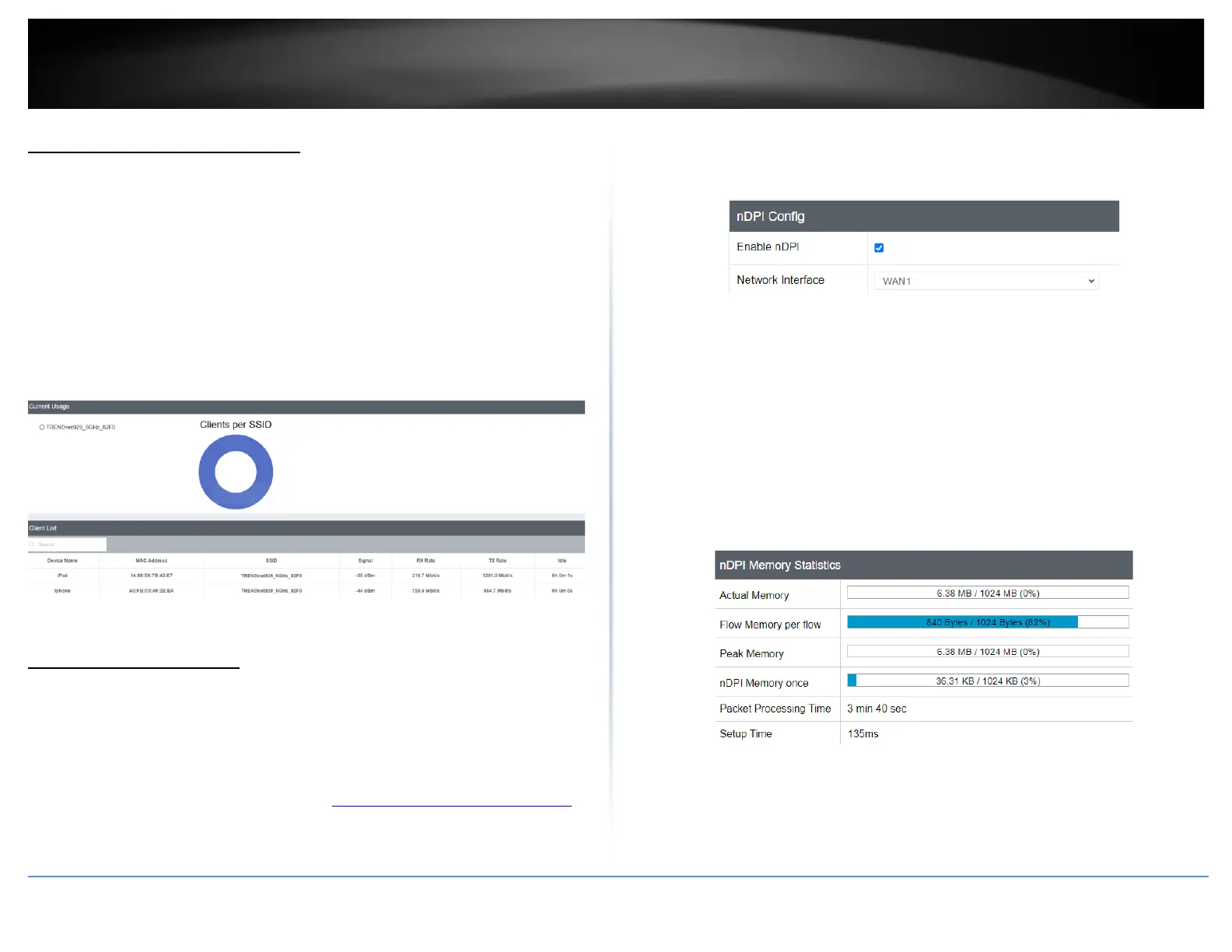 • Packet Processing Time –Displays length of time nDPI has been enabled
