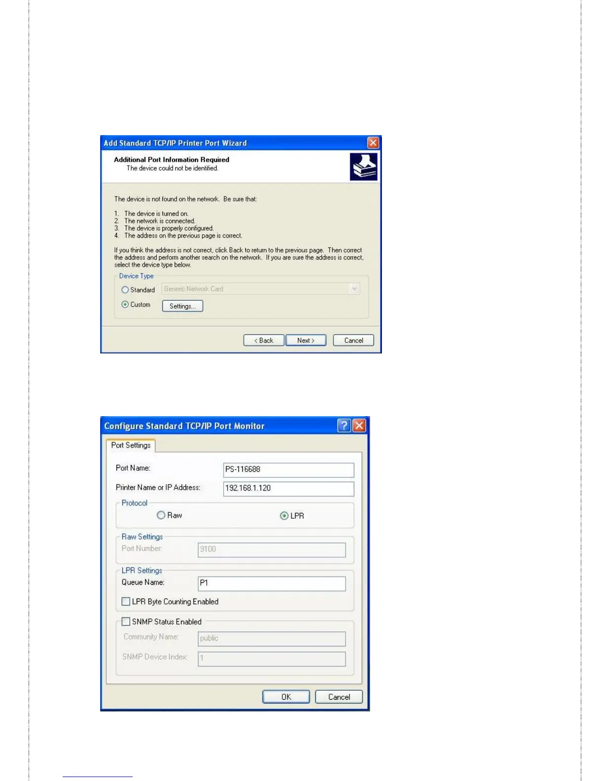 Select “LPR”, and put the Port name in the field labeled “Queue