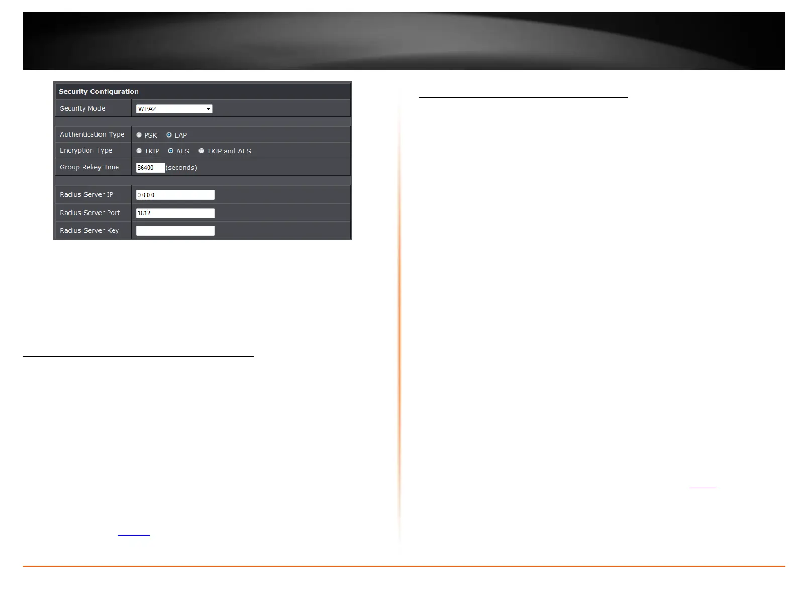 o RADIUS Server IP: Enter the IP address of the RADIUS server. (e.g. 192.168.10.250)