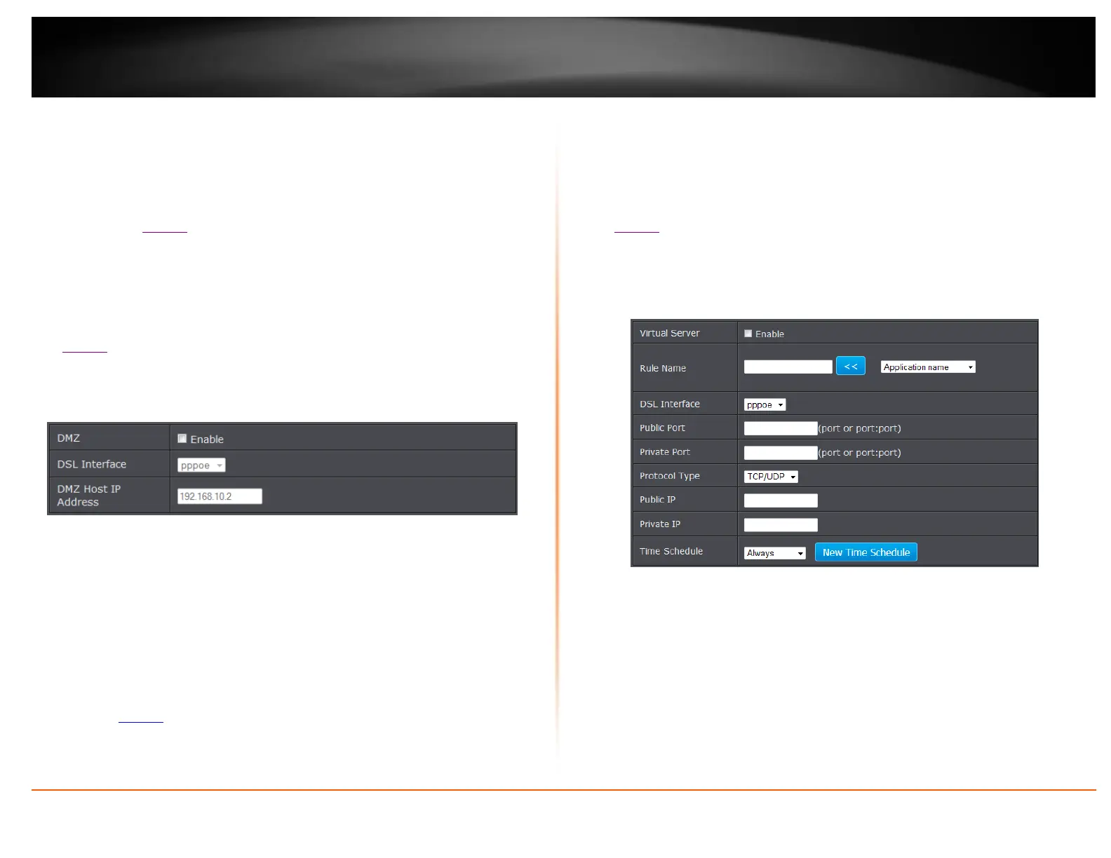 (see “DMZ” on page 35) in which DMZ forwards all ports instead of only specific ports