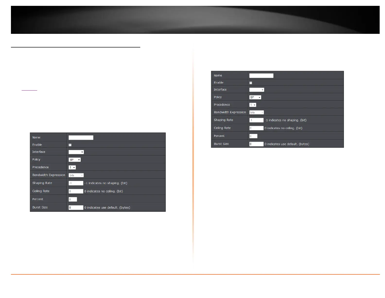 o Kbits: Enter the Shaping Rate and Ceiling Rate.