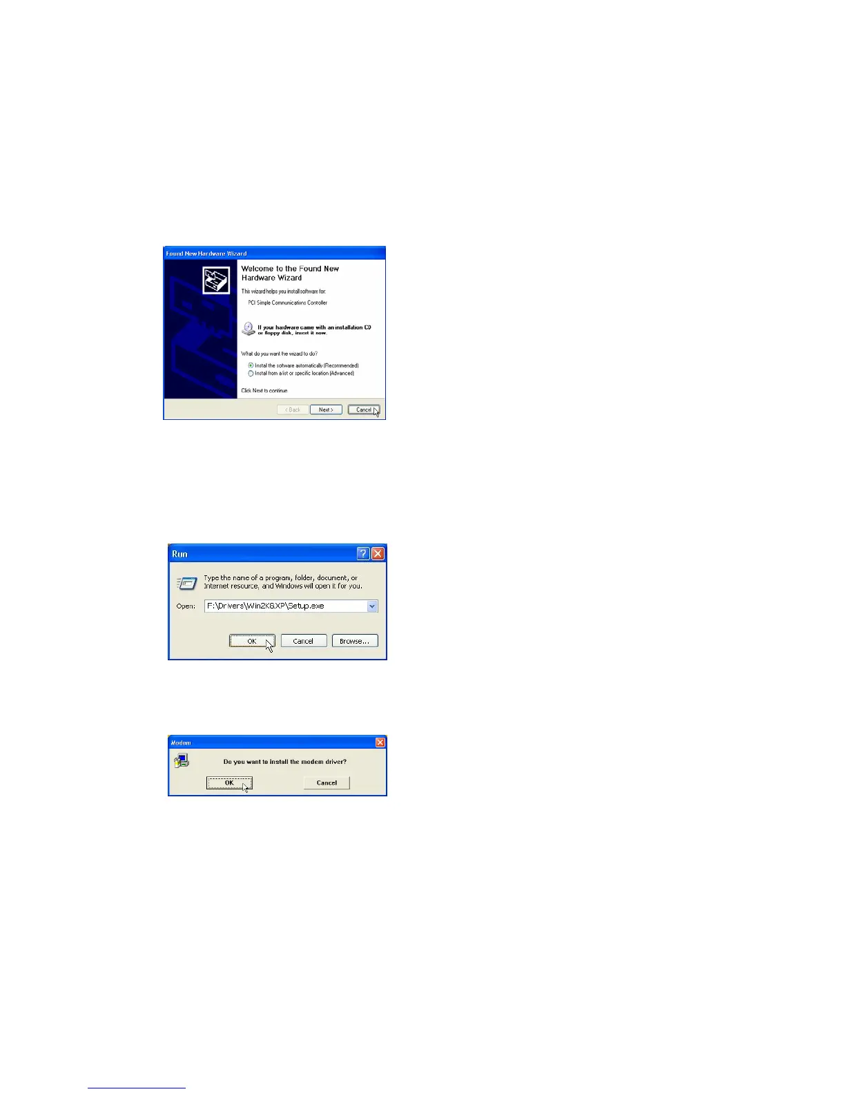Then run <CD-ROM letter>:\Drivers\Win2K&XP\SETUP.EXE to upgrade the modem driver as