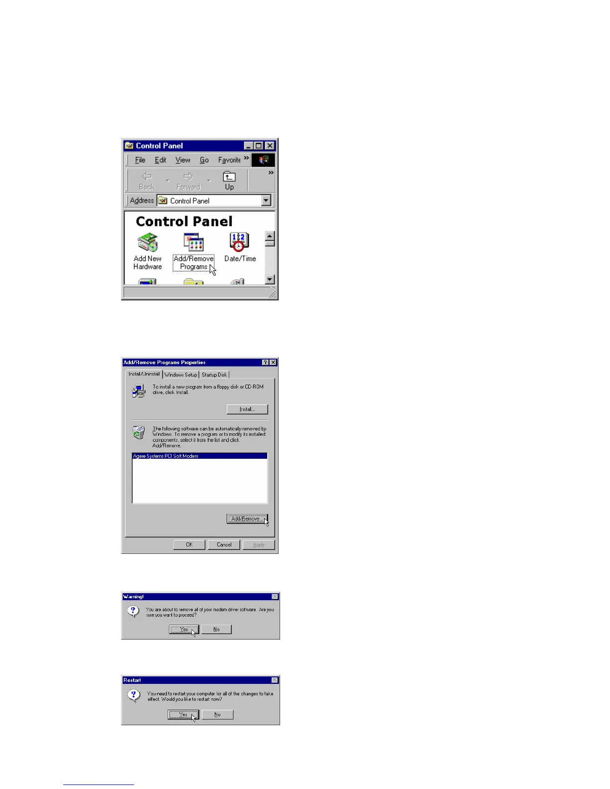 Section 2.3.2 Uninstall Modem from Windows 98