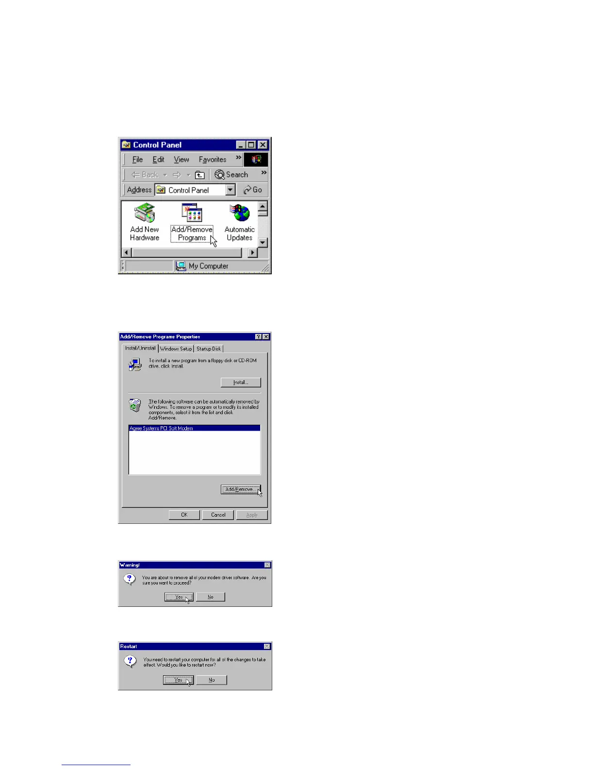 Section 2.3.4 Uninstall Modem from Windows Me