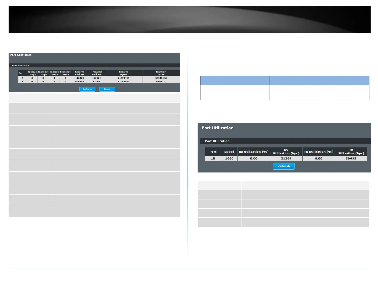 This feature helps users to monitor the ports’ traffic utilization, to display the link up