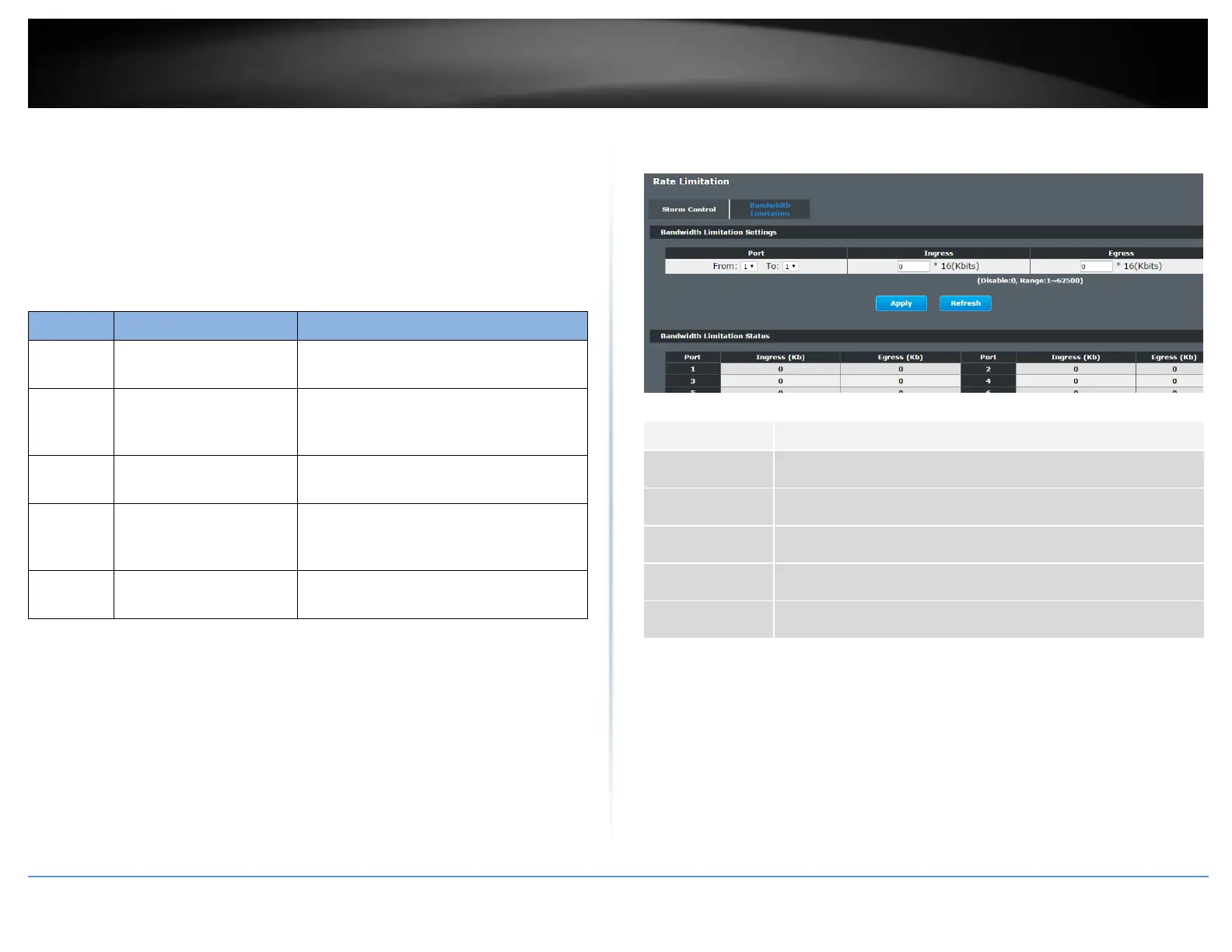 [DEVICE_NAME](config)#bandwidth-limit ingress 1 ports 1-6