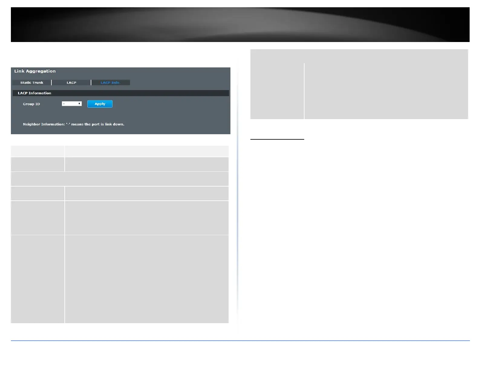 Advanced Settings > Link Aggregation > LACP Info.