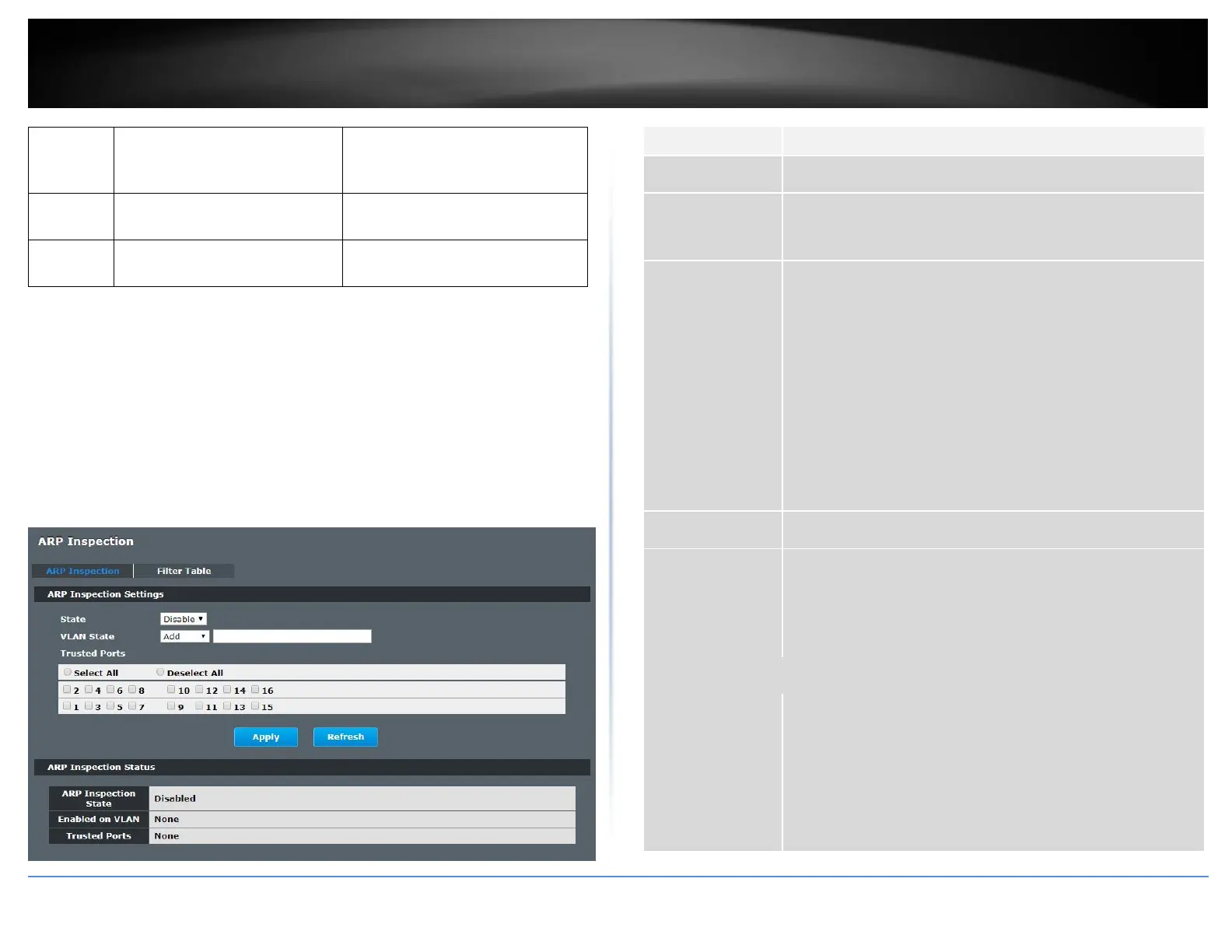 Security > IP Source Guard > ARP Inspection > ARP Inspection