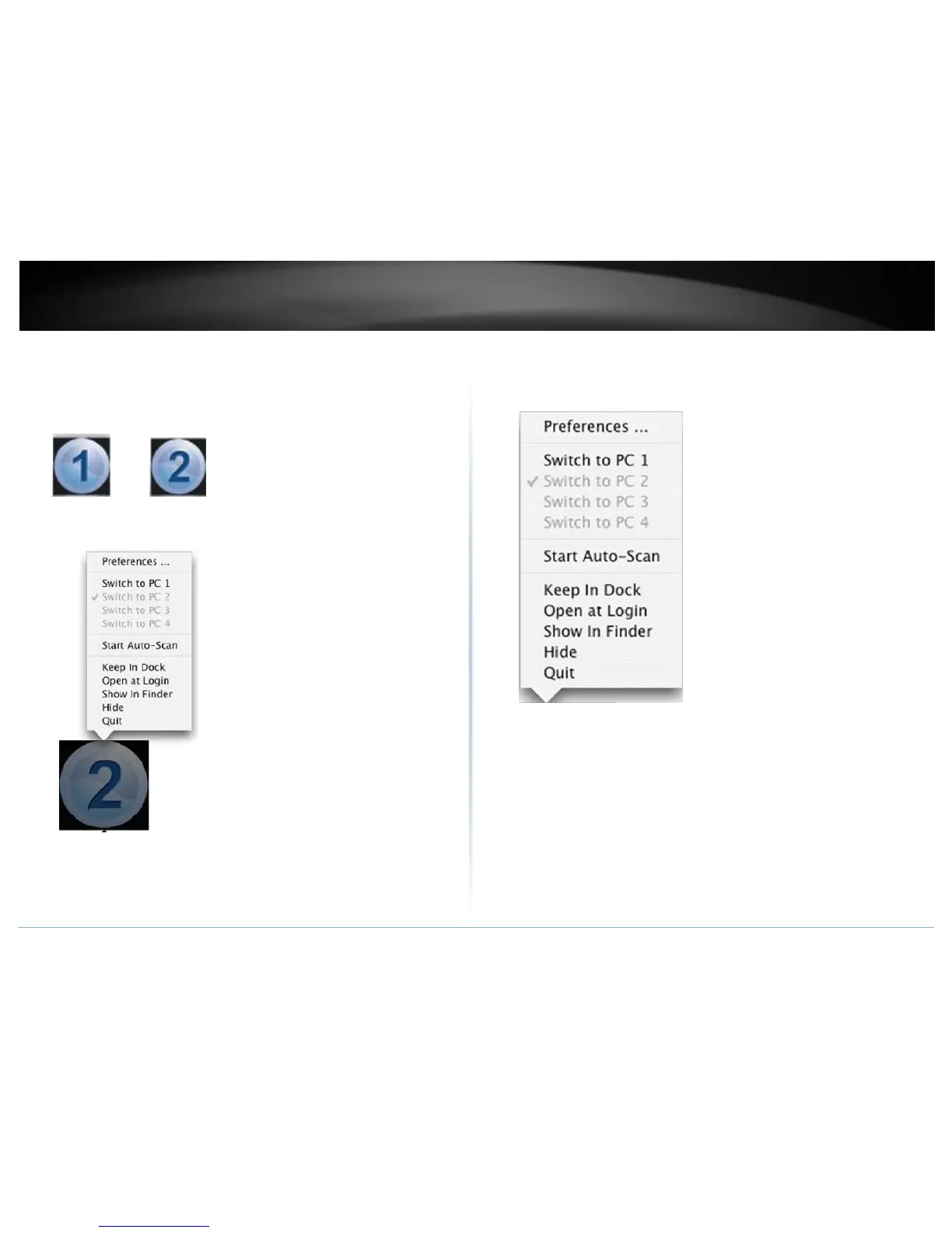 connected to computer 1 port, the dock will show an icon with the number 1.