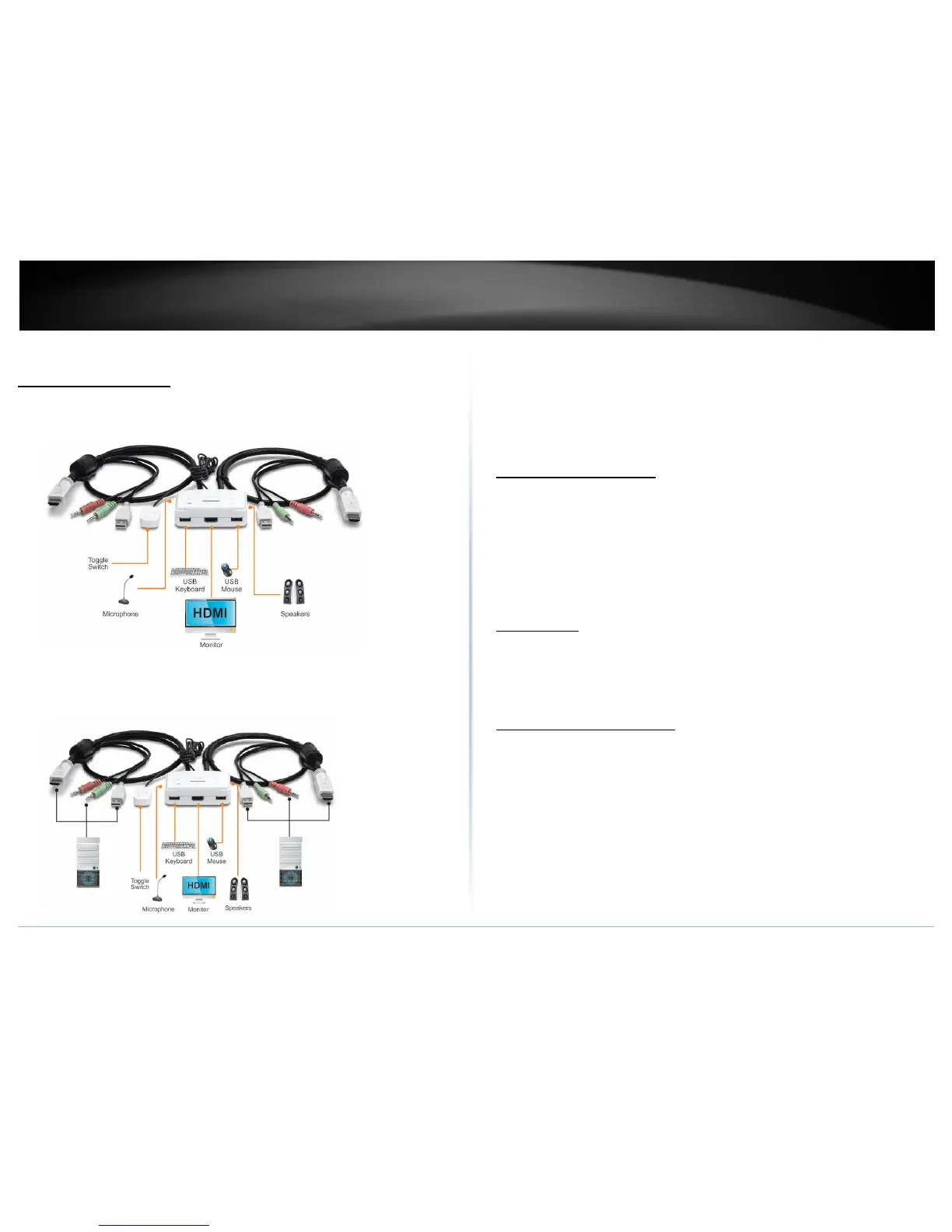 The one touch toggle switch allows you to switch to another computer by click the