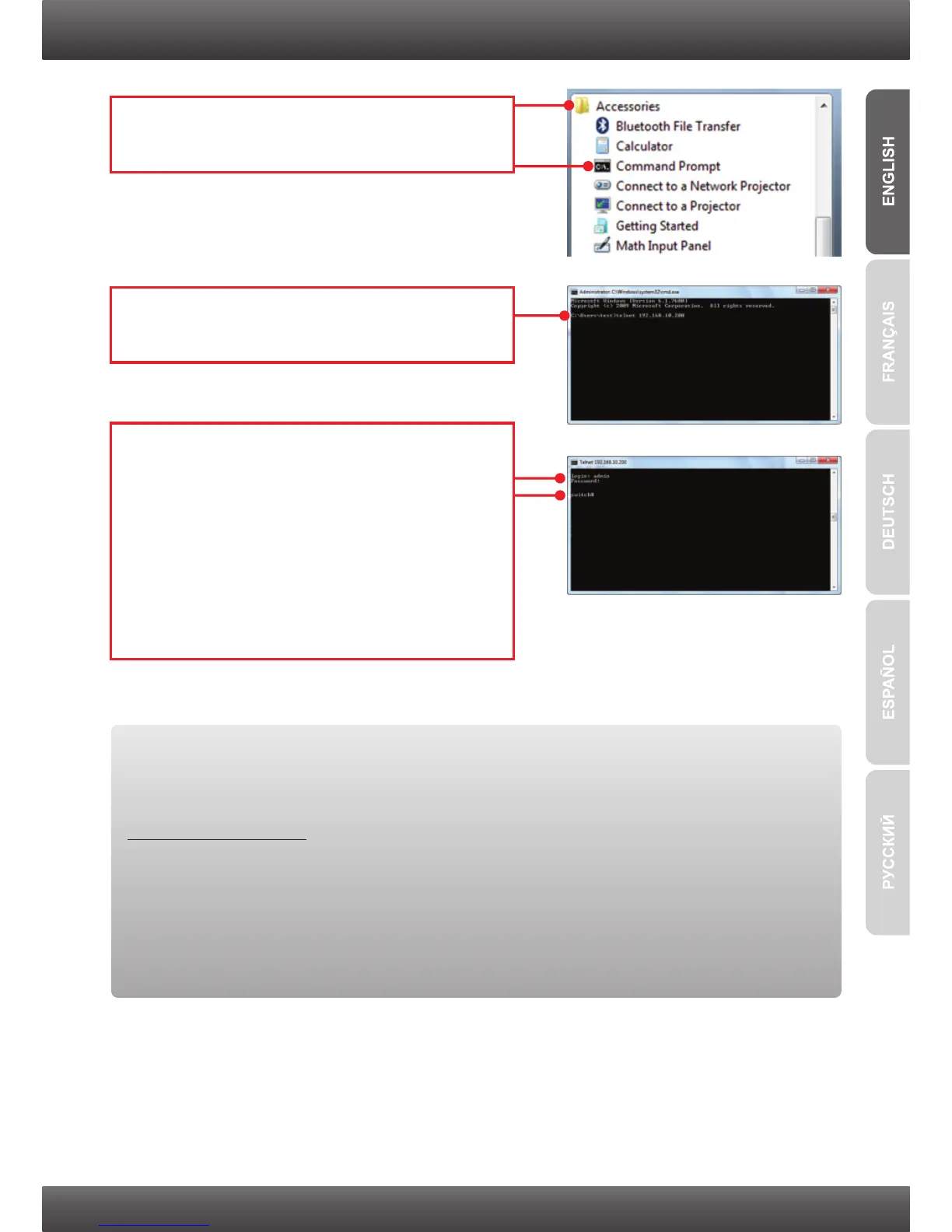3. Type in telnet 192.168.10.200. Then press the