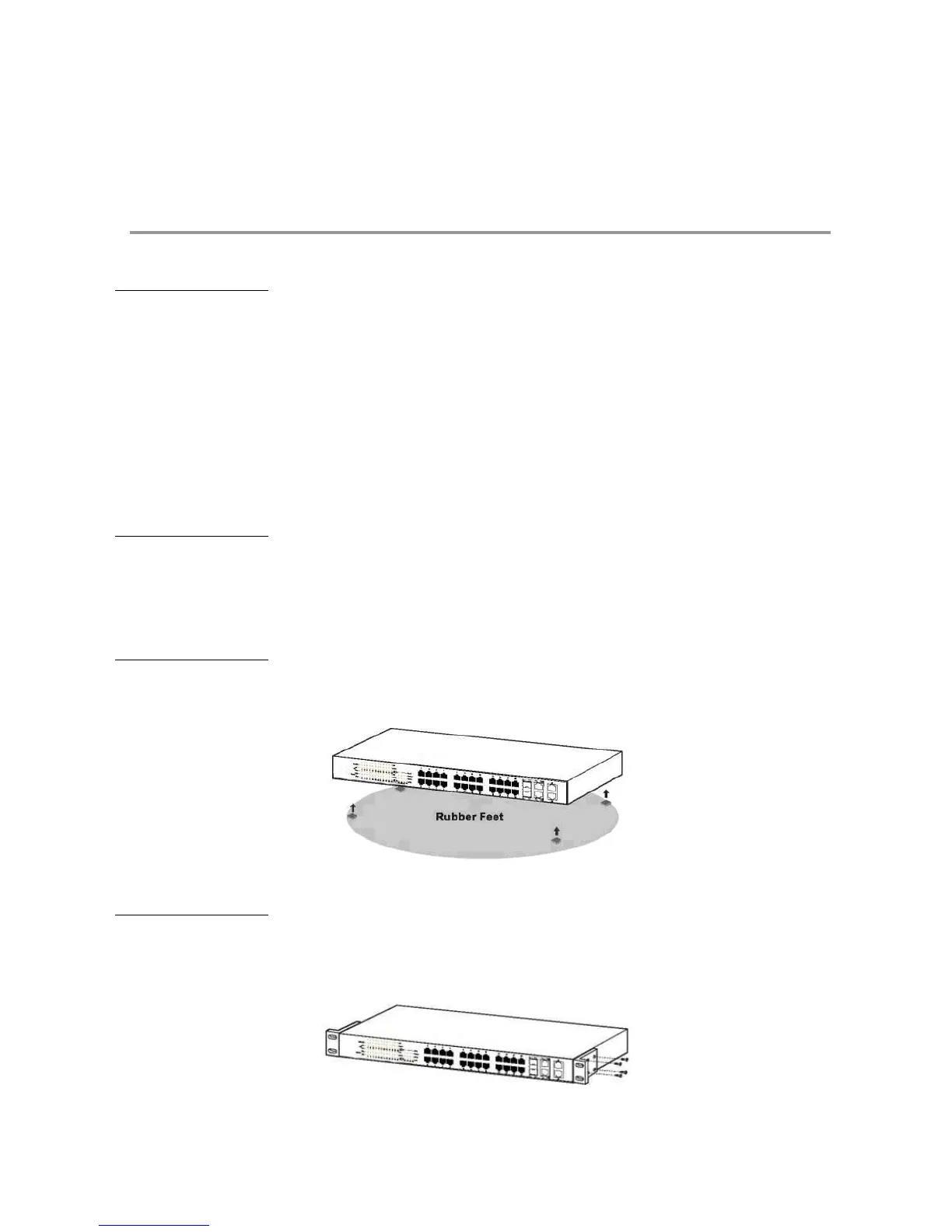 When installing the switch on a desktop or shelf, the rubber feet included with the