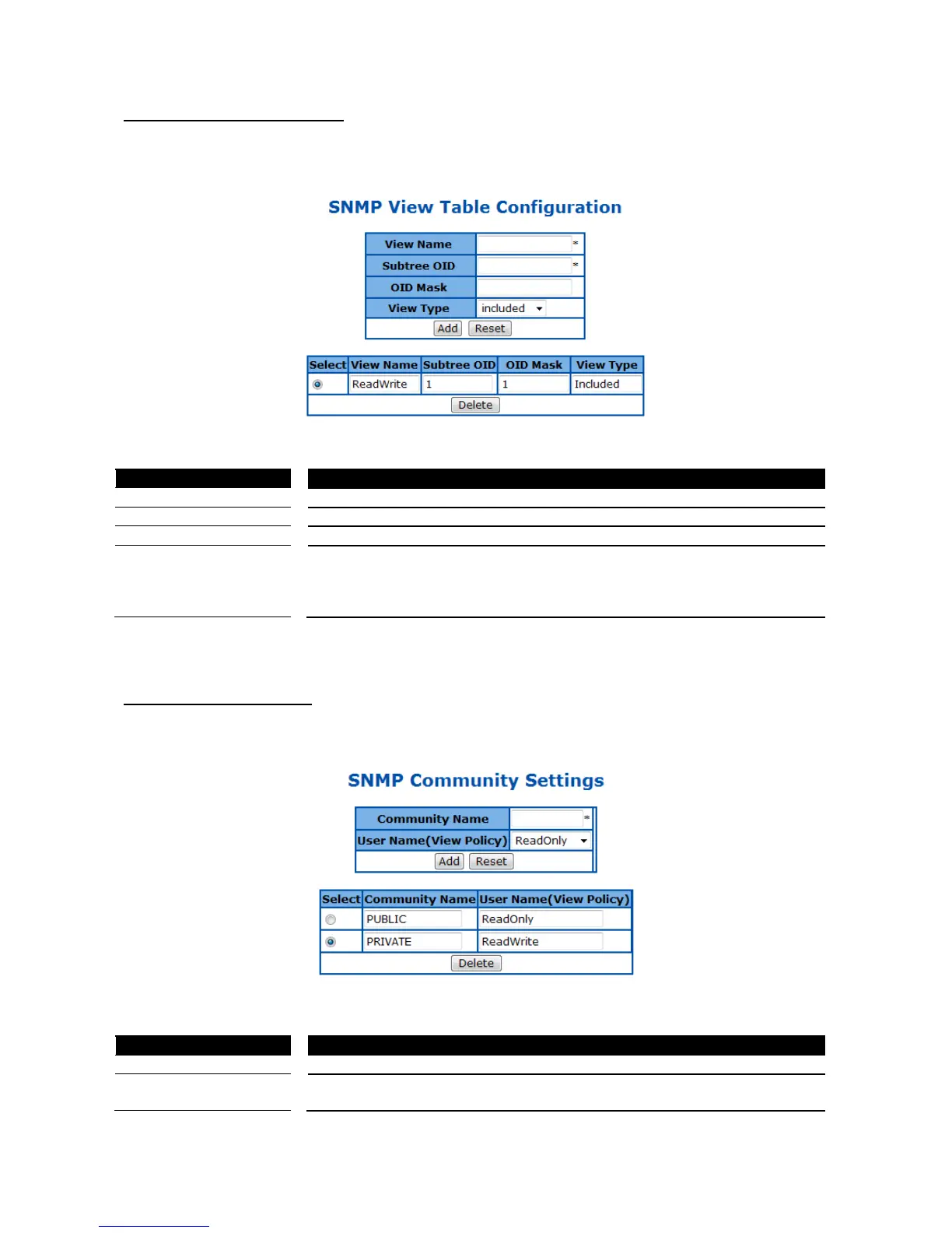 This page is to create a SNMP view, which limits the range of MIB objects that a SNMP administrator can