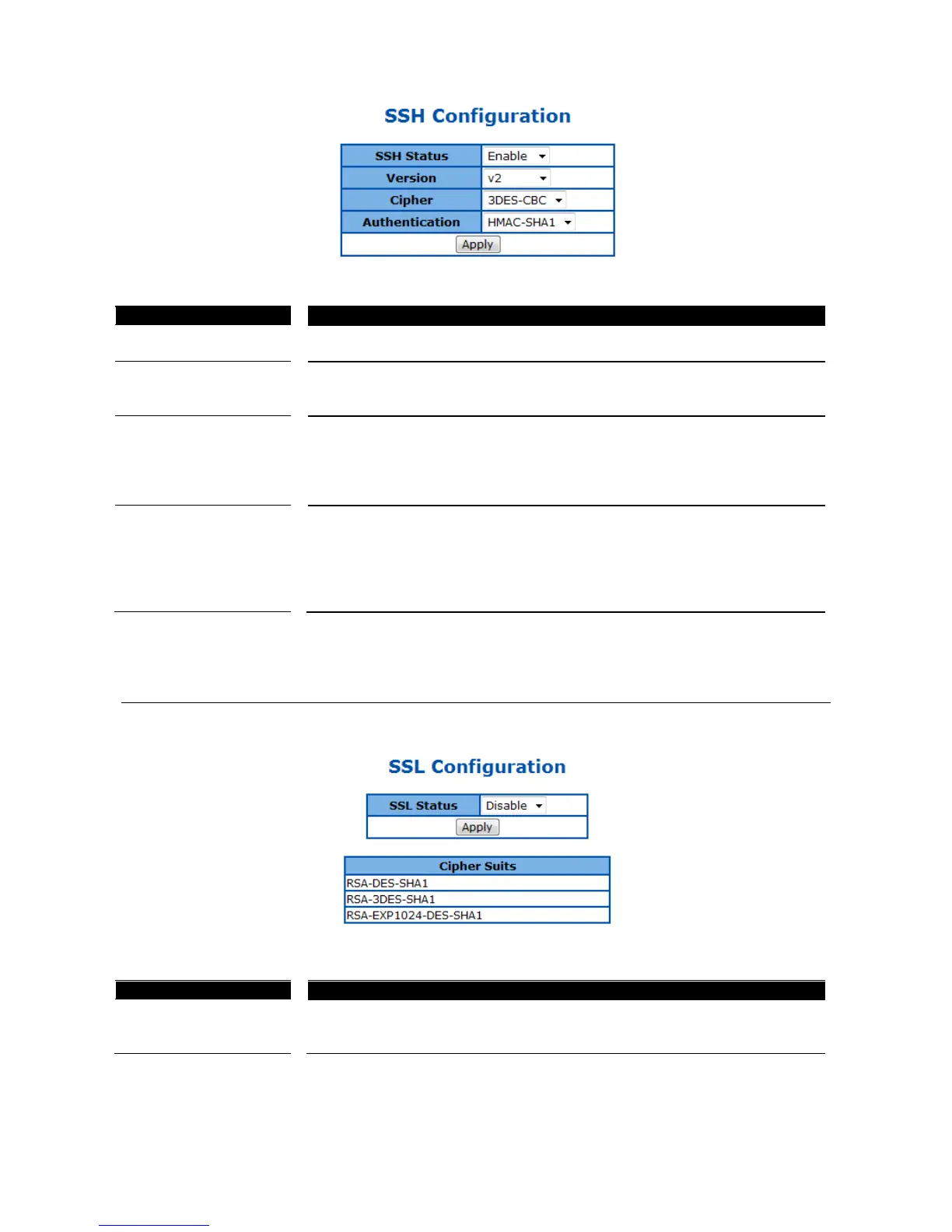 Select Enable or Disable to turn on or off the SSH server function. Default is