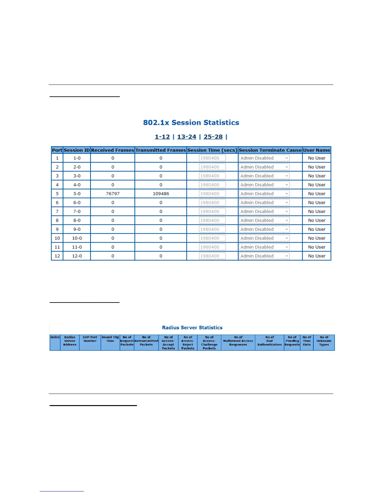 Figure 93 – Statistics > 802.1X > Session Stats