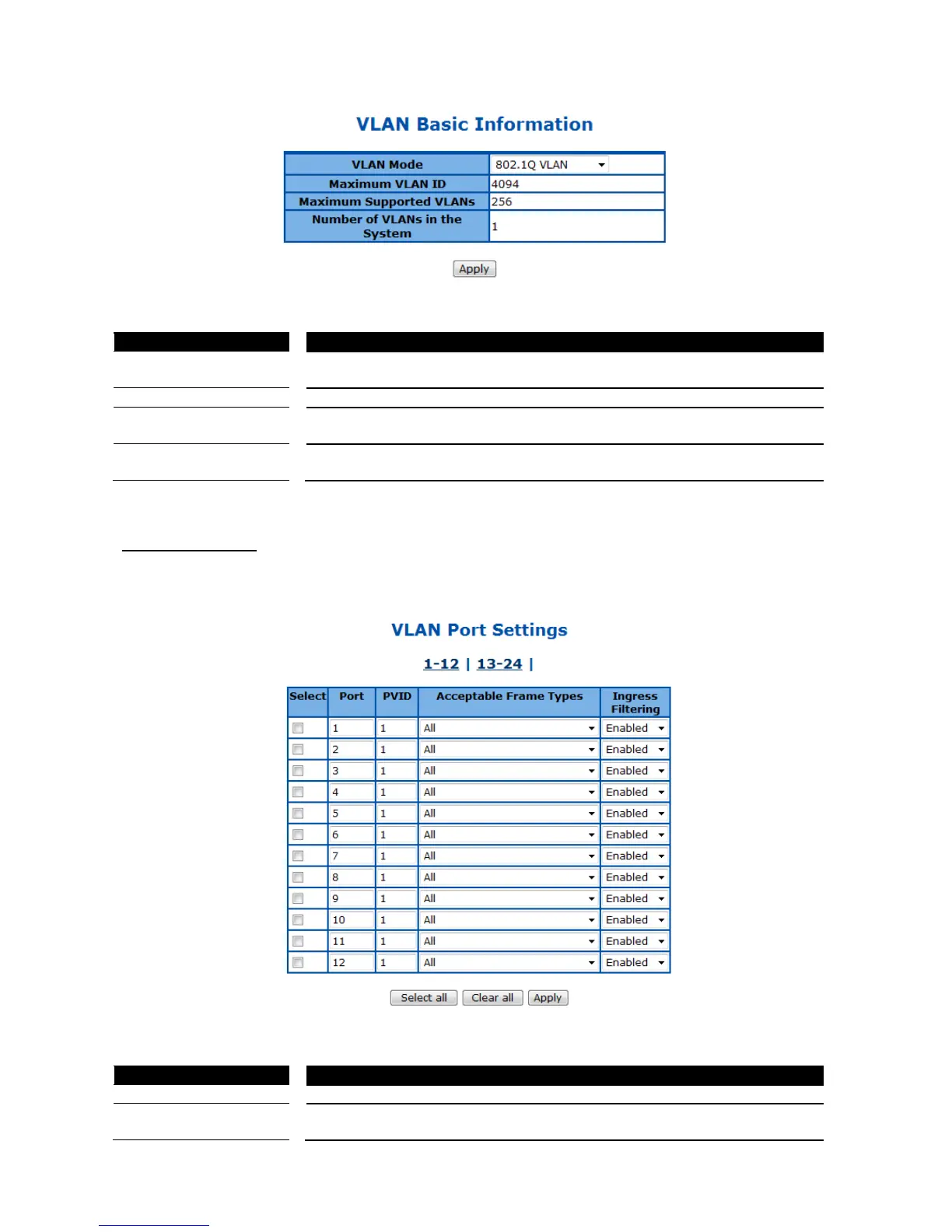 Figure 32 – Layer2 Management > VLAN > Basic Information