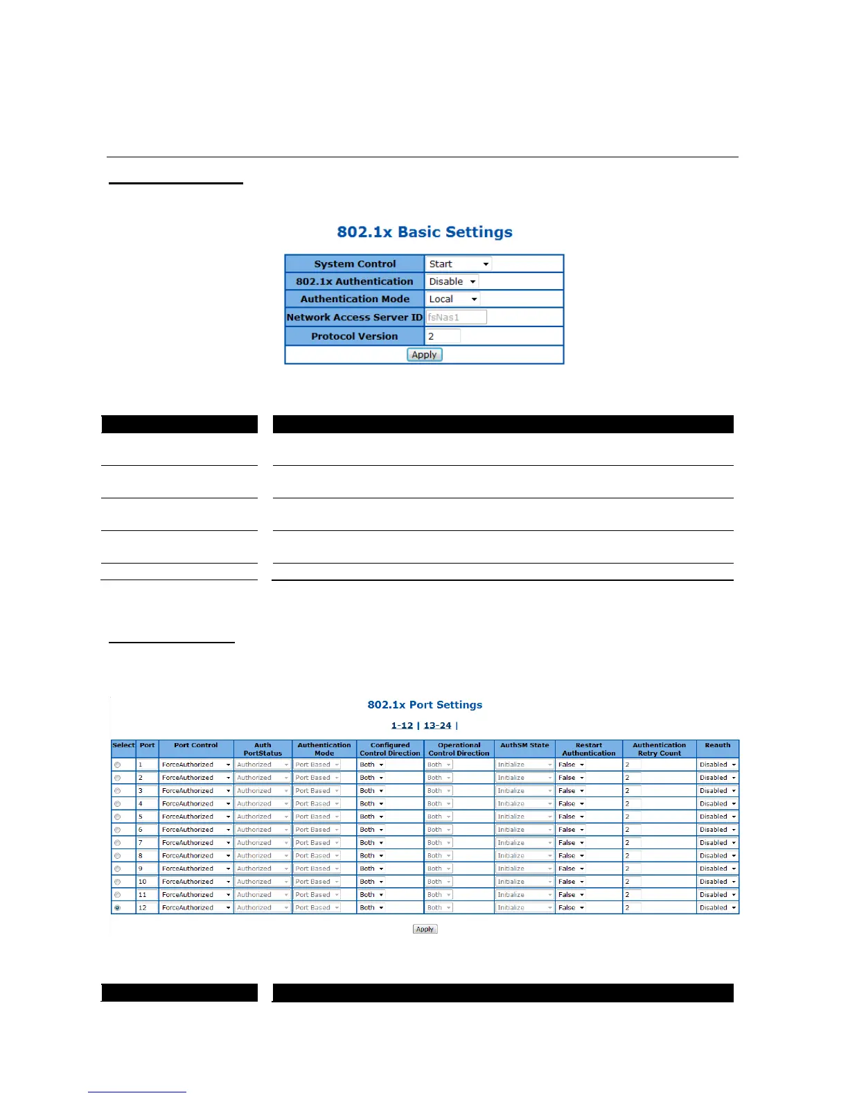 This page is to configure the port related setting of 802.1X.