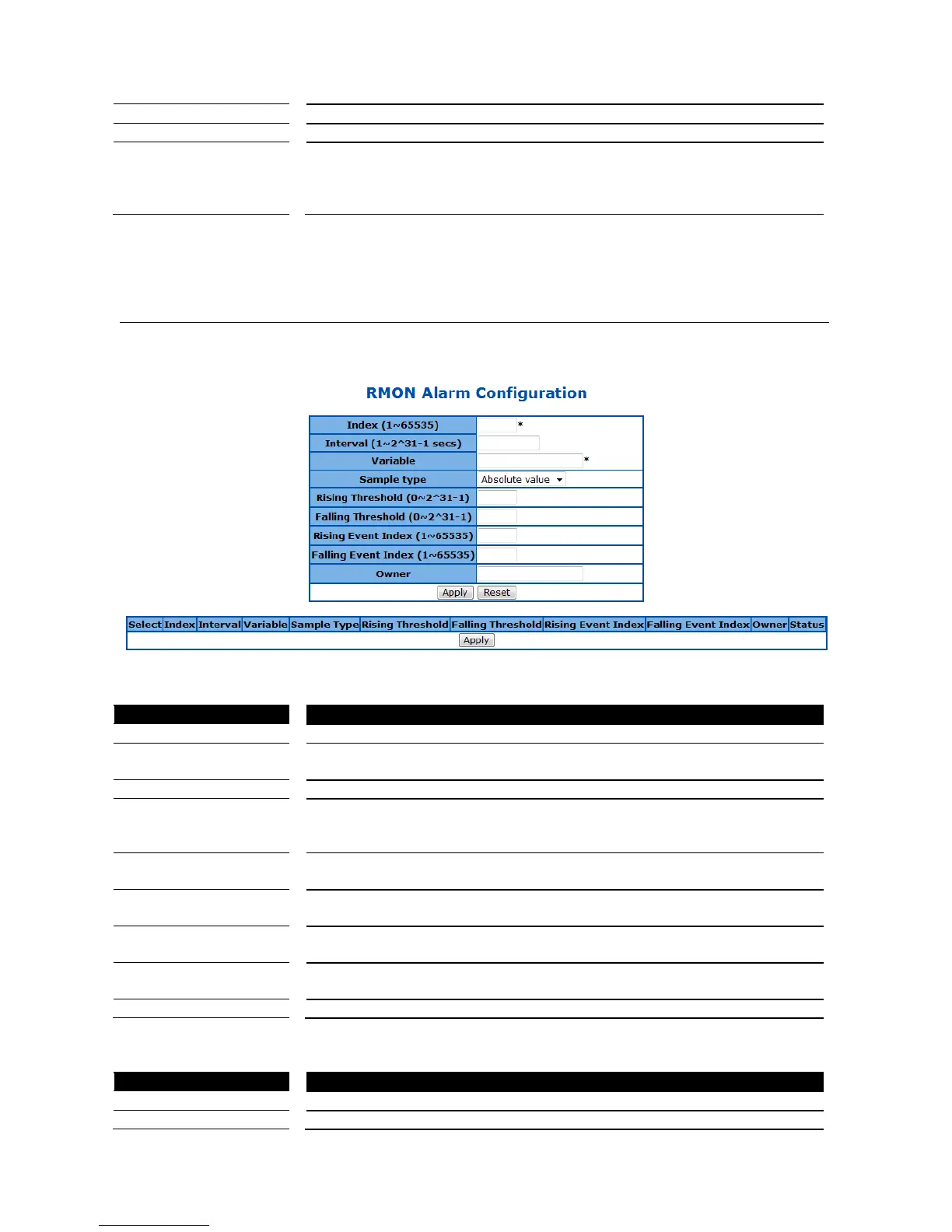 Click Add to create a new RMON alarm, Reset to clear the value.