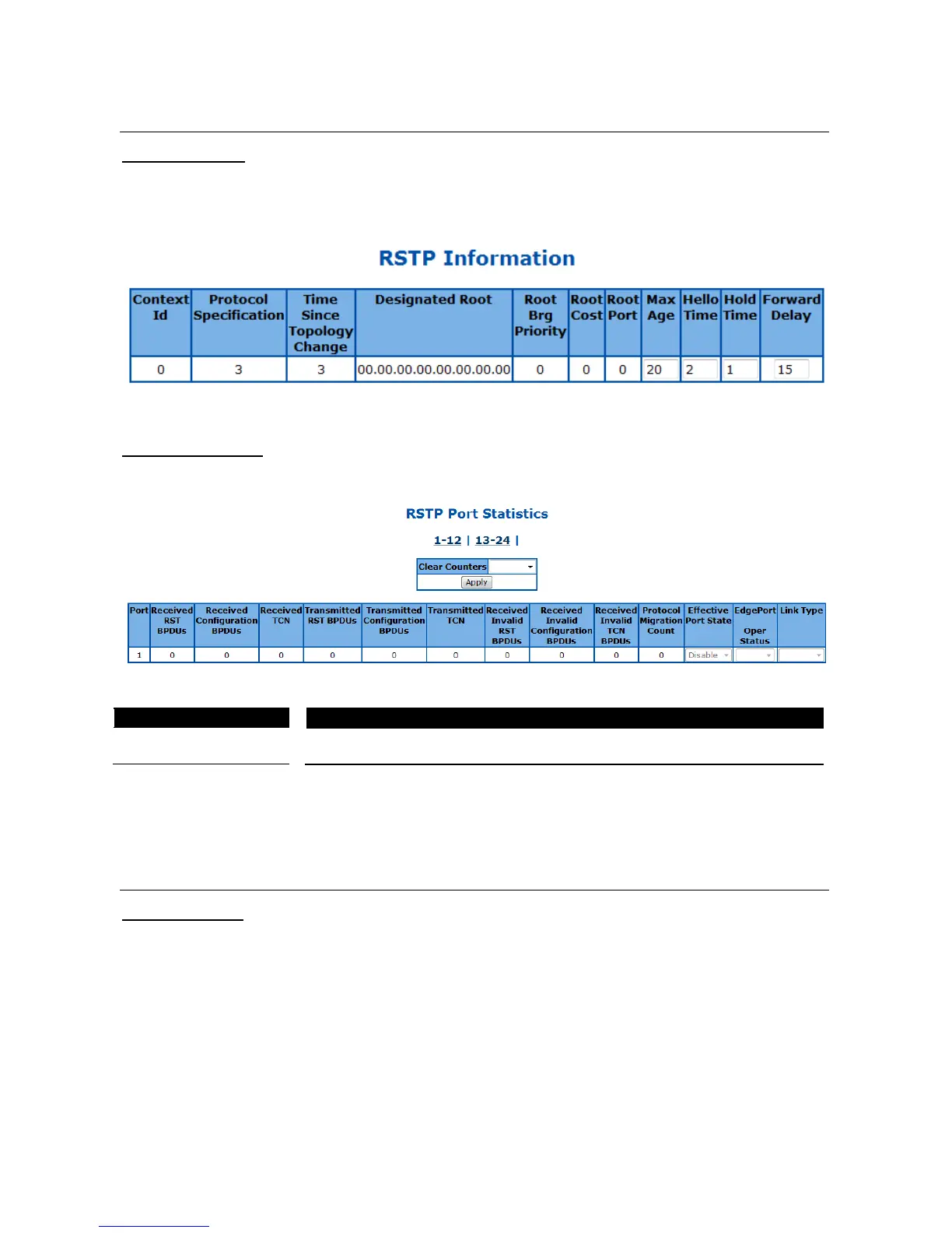 TRENDnet TL2-G244 - Rstp; RSTP Information; RSTP Port Statistics; LA Port Statistics
